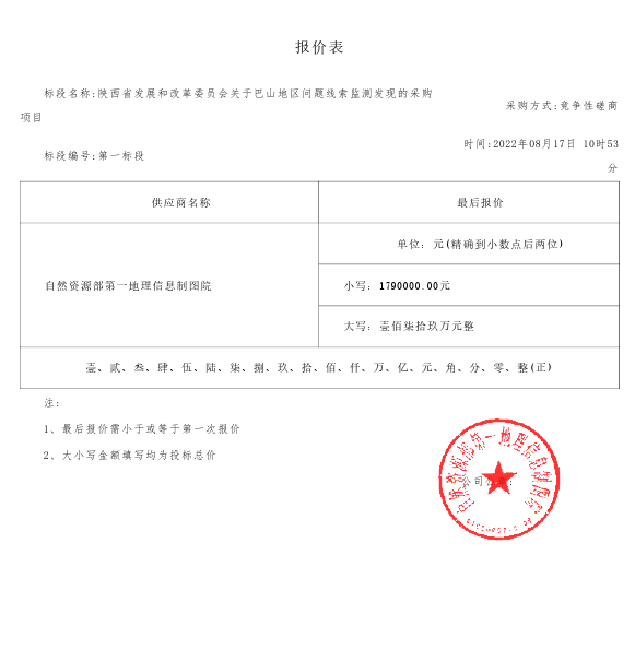 2022年8月22日陕西省发展和改革委员会机关关于巴山地区问题线索监测发现的采购项目中标(成交)结果公告 |