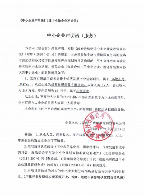 合同包1(宝鸡市渭滨区商务局楼宇经济发展产业规划项目): 服务类(成都秋原科技有限公司)