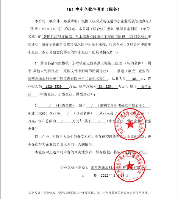 合同包1(紫阳县渚河红椿镇、东木镇重点段防洪工程施工监理): 服务类(陕西志通水利水电工程监理有限公司)