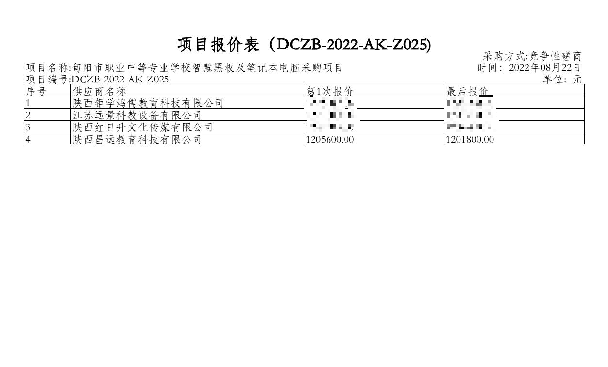2022年8月22日旬阳市职业中等专业学校智慧黑板及笔记本电脑采购项目中标(成交)结果公告 |
