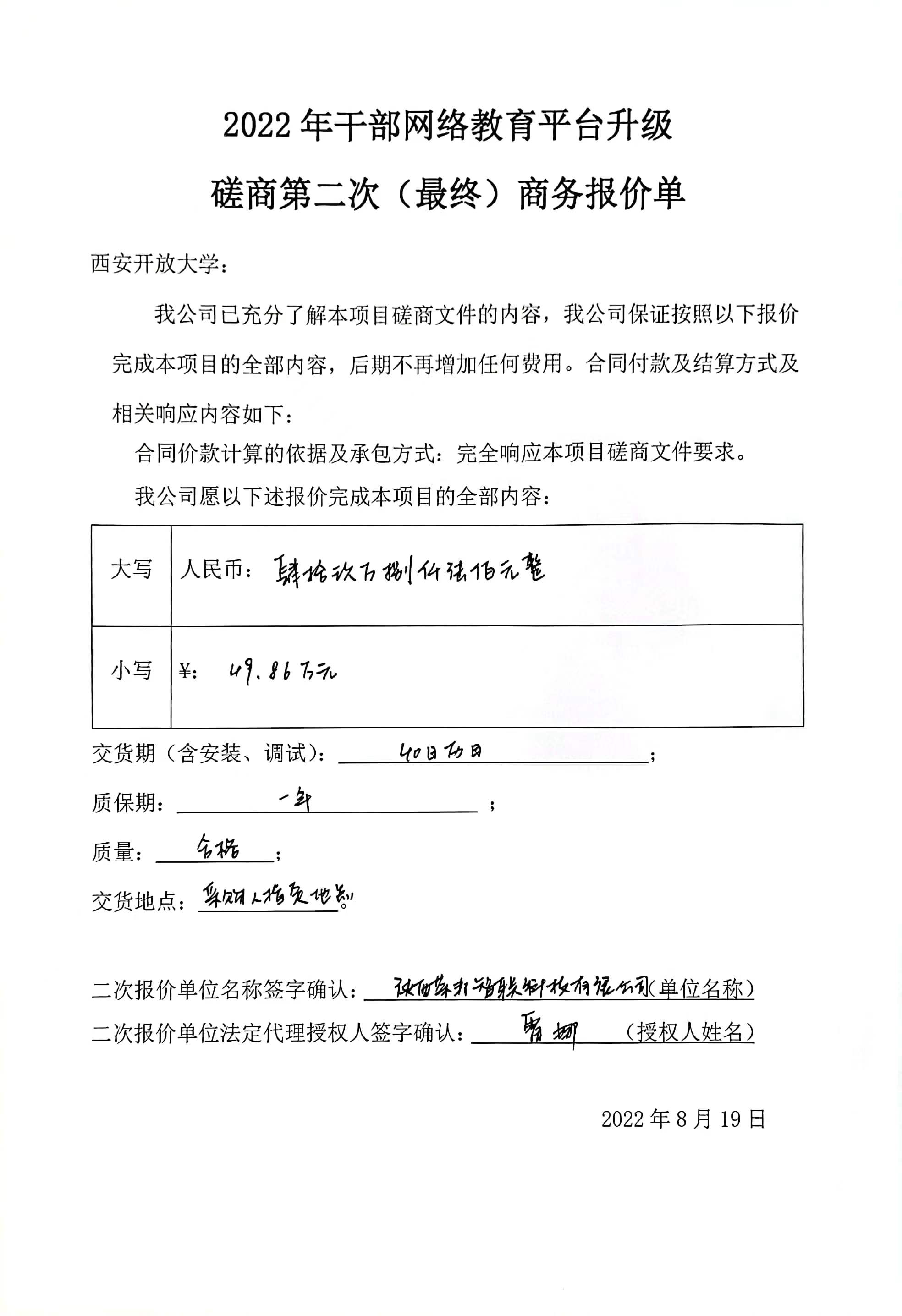 2022年8月23日西安开放大学2022年干部网络教育平台升级中标(成交)结果公告 |