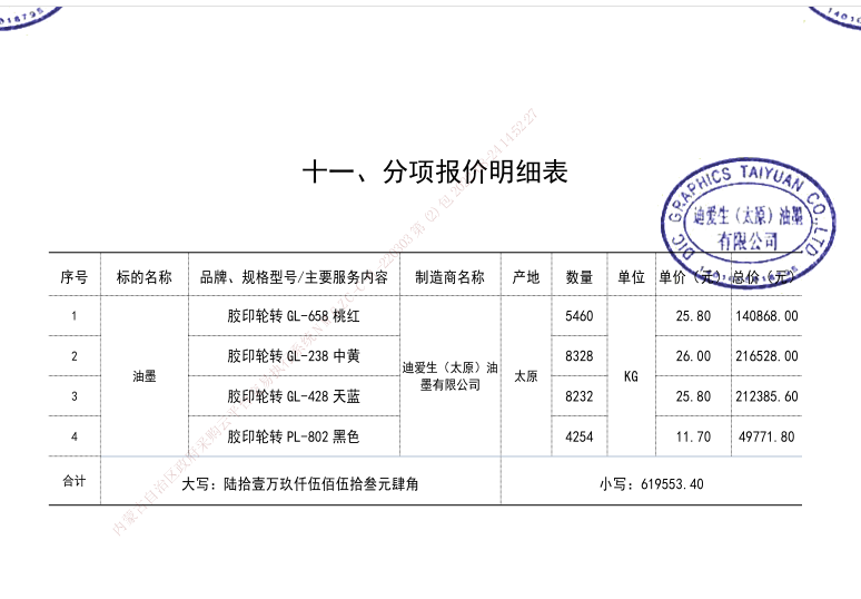 合同包2(油墨): 货物类(迪爱生(太原)油墨有限公司)
