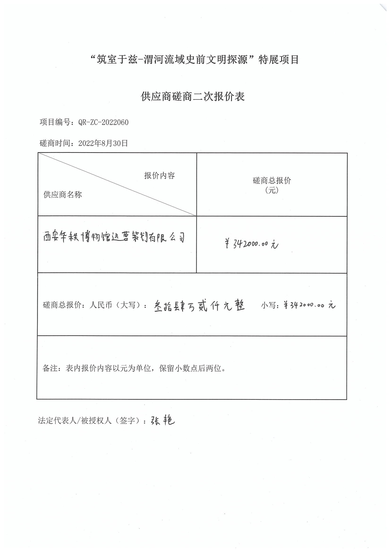 ----------------------------------招标机构发布信息原文:----------------------- <meta http-equiv="content-type" content="text/html;charset=utf-8"> 一、项目编号:QR-ZC-2022060 二、项目名称:“筑室于兹-渭河流域史前文明探源”特展项目 三、采购结果 合同包1(“筑室于兹-渭河流域史前文明探源”特展项目):