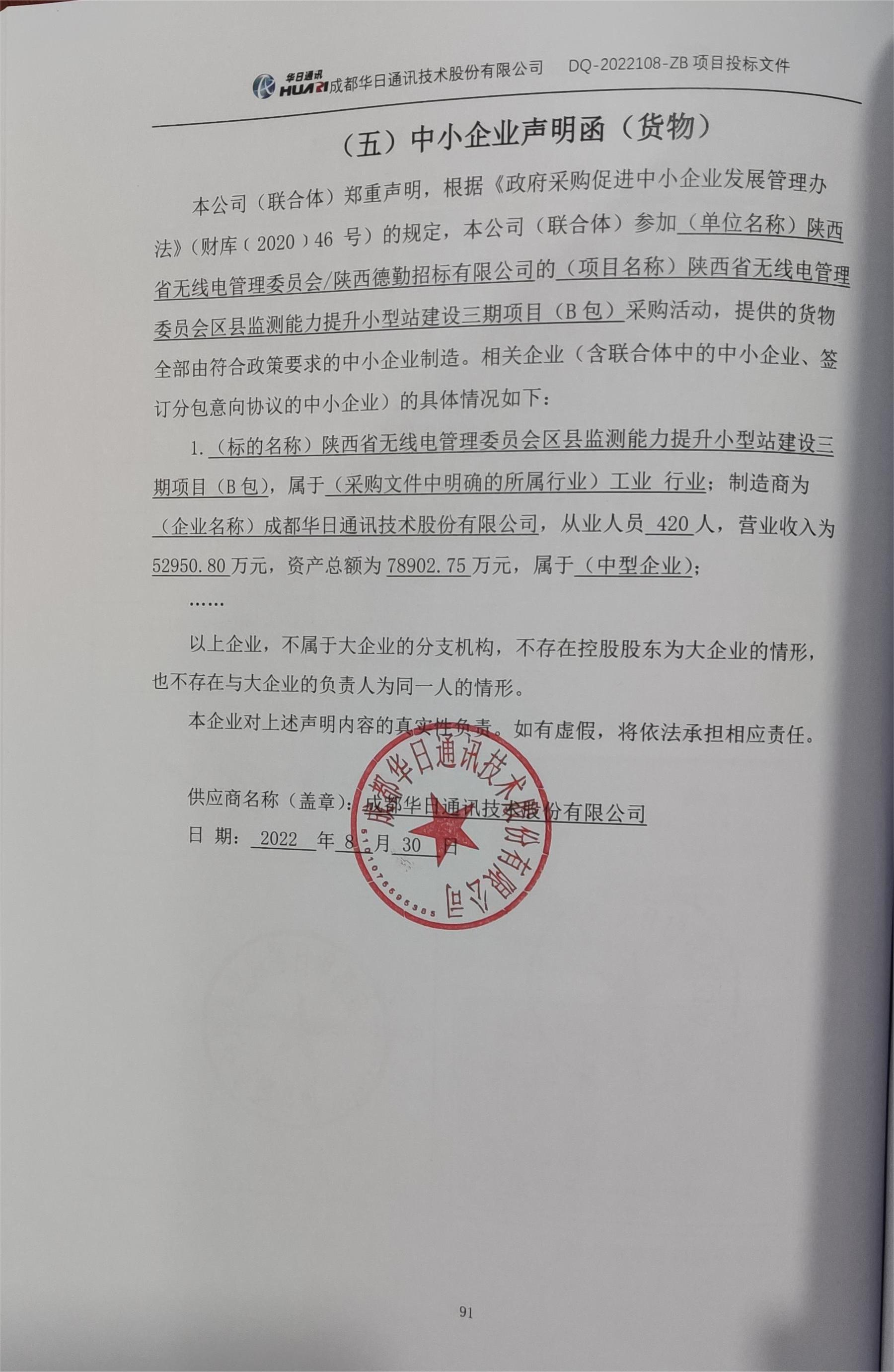 自本公告发布之日起1个工作日。 八、其他补充事宜无 九、凡对本次公告内容提出询问,请按以下方式联系。 1.采购人信息名称:陕西省无线电管理委员会机关 地址:省政府新城大院四号楼 联系方式:02963915685 2.采购代理机构信息名称:陕西德勤招标有限公司 地址:陕西省西安市高新区丈八一路1号汇鑫中心D座2206室 联系方式:029-81106093 3.项目联系方式项目联系人:贾旭鸣、李浩、党徽 电话:029-81106093 陕西德勤招标有限公司 2022年09月01日 相关附件: 陕西省无线电管理委员会机关区县监测能力提升小型站建设三期项目(B包)中标(成交)明细.pdf 华日.jpg 108报价.doc 陕西省无线电管理委员会区县监测能力提升小型站建设三期项目(B包).docx 十一、其他事项: ------------------------------------招标信息结束---------------------------- 标签: 中标 项目 无线电管理委员会 陕西省 区县 三期 机关 上一篇: 2022年9月1日湛江经开区东山街道美丽宜居村创建项目东坡村委会项目工程(GDFL2203A06N251)结果公告 最新5000条招标信息列表: 滚动招标 |