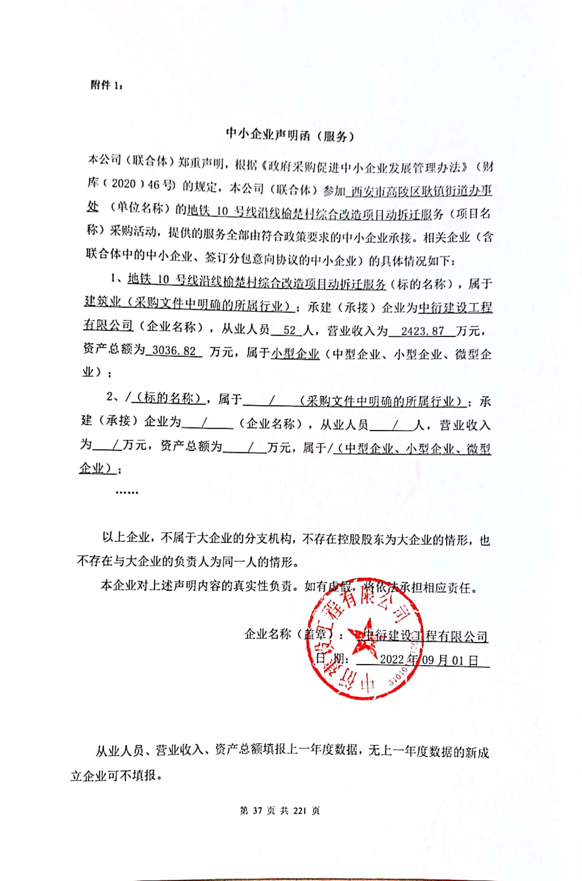 自本公告发布之日起1个工作日。 八、其他补充事宜/ 九、凡对本次公告内容提出询问,请按以下方式联系。 1.采购人信息名称:西安市高陵区耿镇街道办事处 地址:西安市高陵区耿镇街道苏虎路副6号 联系方式:029-86060010 2.采购代理机构信息名称:瑞科项目管理有限公司 地址:西安市经济技术开发区未央路303号保利中达广场2207室 联系方式:029-86168186 3.项目联系方式项目联系人:刘工 电话:17792642151 瑞科项目管理有限公司 2022年09月02日 相关附件: 西安市高陵区耿镇街道办事处地铁10号线沿线榆楚村综合改造项目动拆迁服务中标(成交)明细.pdf 1包--中小企业声明函.jpg 2包--中小企业声明函.jpg 地铁10号线沿线榆楚村综合改造项目动拆迁服务--招标文件--定稿.pdf 十一、其他事项: ------------------------------------招标信息结束---------------------------- 标签: 中标 高陵 西安市 沿线 街道办事处 改造项目 地铁 上一篇: 2022年9月2日河?镇凌霄路道路升级改造工程结果公告 最新5000条招标信息列表: 滚动招标 |