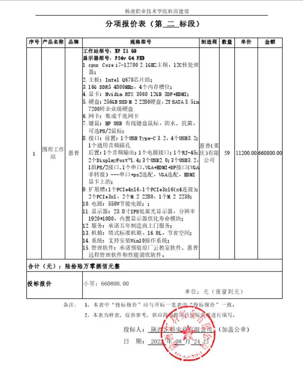----------------------------------招标机构发布信息原文:----------------------- <meta http-equiv="content-type" content="text/html;charset=utf-8"> 一、项目编号:SNCG-FM-2022086 二、项目名称:机房建设项目 三、采购结果 合同包2(杨凌职业技术学院信息处理技术实训室机房图形工作站采购):