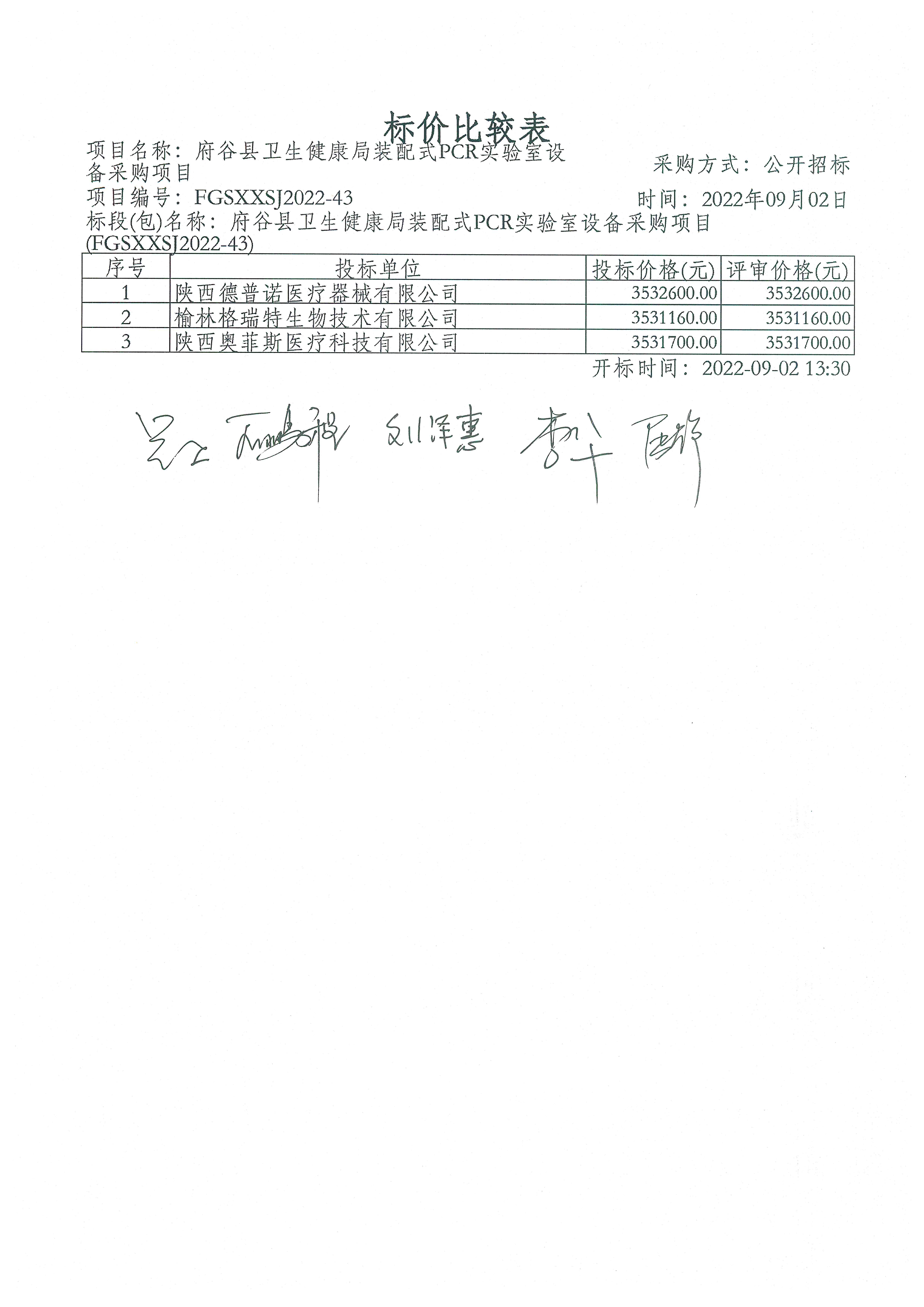----------------------------------招标机构发布信息原文:----------------------- <meta http-equiv="content-type" content="text/html;charset=utf-8"> 一、项目编号:FGSXXSJ2022-43. 二、项目名称:装配式PCR实验室设备采购项目 三、采购结果 合同包1(府谷县卫生健康局装配式PCR实验室设备采购项目):
