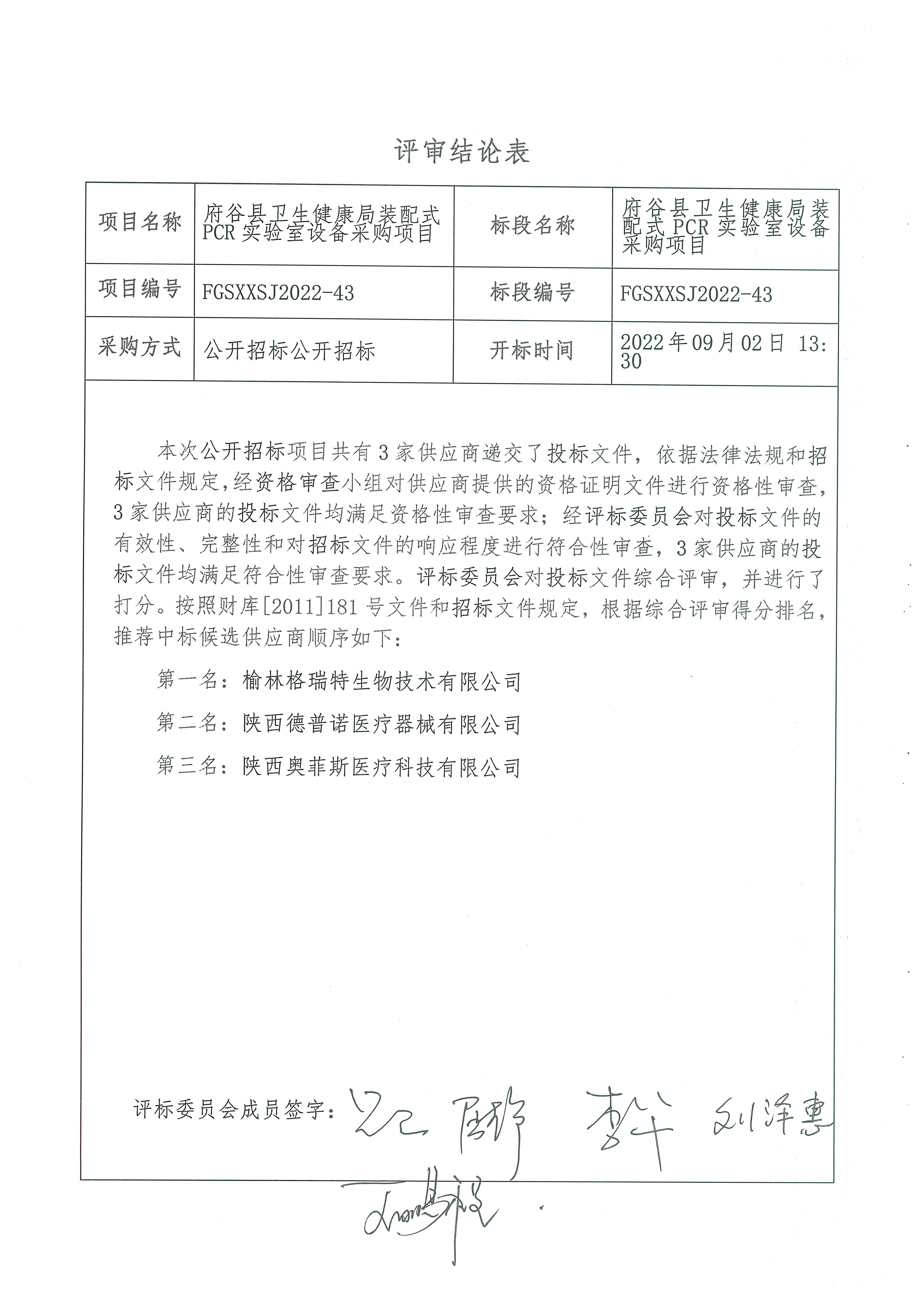 2022年9月5日府谷县卫生健康局装配式PCR实验室设备采购项目中标(成交)结果公告 |