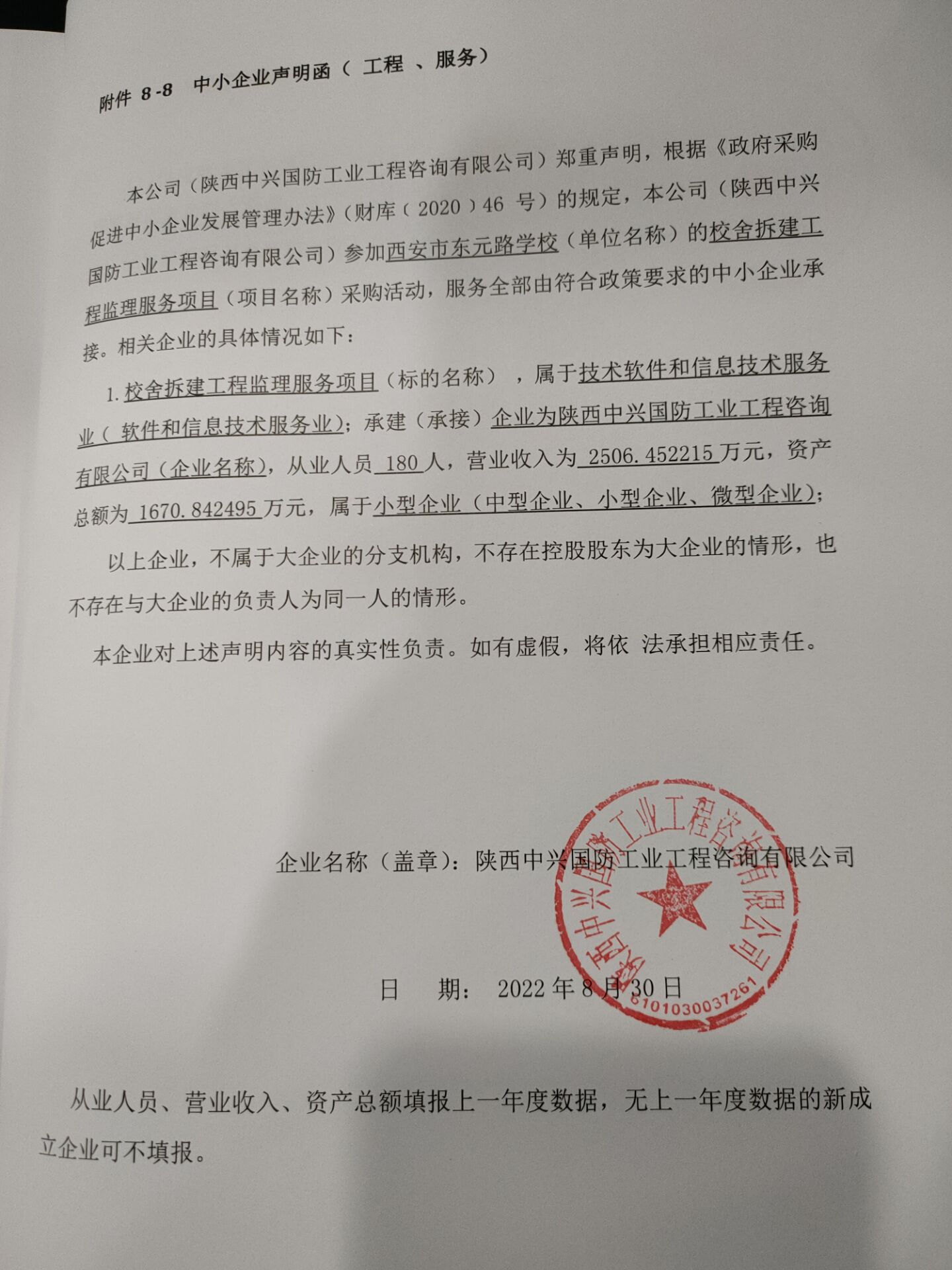 2022年9月5日西安市东元路学校校舍拆建工程监理服务项目中标(成交)结果公告 |