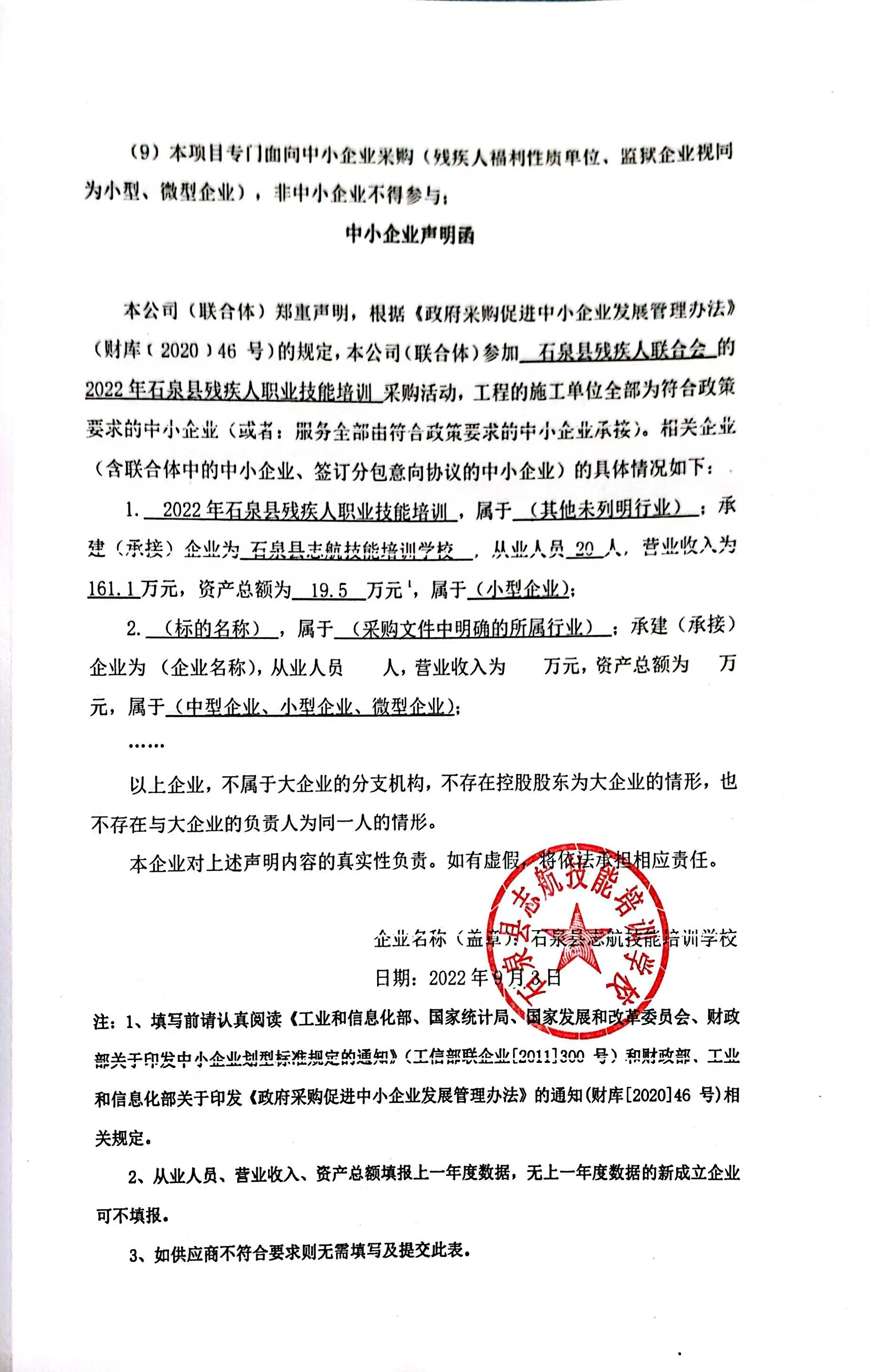 合同包1(2022年石泉县残疾人职业技能培训): 服务类(石泉县志航技能培训学校)
