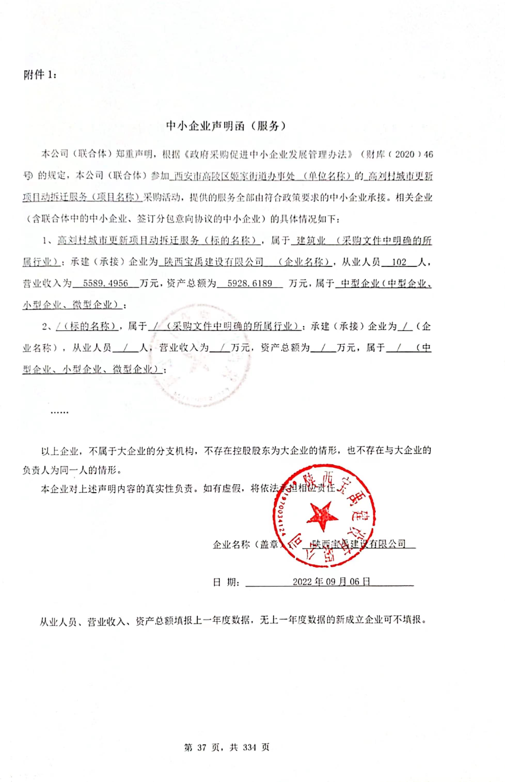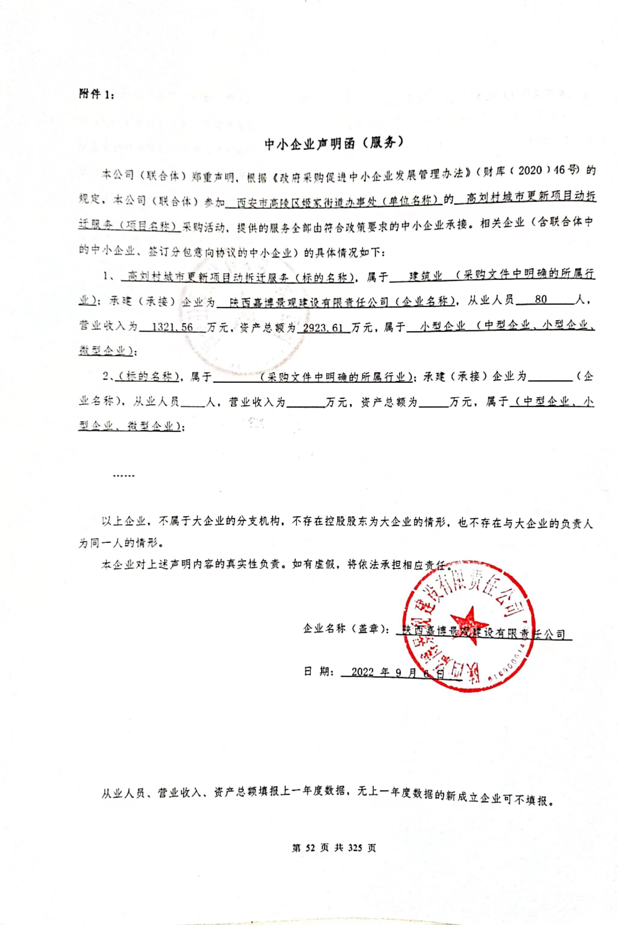 自本公告发布之日起1个工作日。 八、其他补充事宜/ 九、凡对本次公告内容提出询问,请按以下方式联系。 1.采购人信息名称:西安市高陵区姬家街道办事处 地址:泾河工业园渭阳路29号姬家街办 联系方式:029-86035378 2.采购代理机构信息名称:瑞科项目管理有限公司 地址:西安市经济技术开发区未央路 303 号保利中达广场 2207 室 联系方式:029-86168186 3.项目联系方式项目联系人:刘工 电话:17792642151 瑞科项目管理有限公司 2022年09月07日 相关附件: 西安市高陵区姬家街道办事处高刘村城市更新项目动拆迁服务中标(成交)明细.pdf 高刘村城市更新项目动拆迁服务--招标文件--定稿.pdf 1包--中小企业声明函.jpg 2包--中小企业声明函.jpg 3包--中小企业声明函.jpg 4包--中小企业声明函.jpg 5包--中小企业声明函.jpg 7包--中小企业声明函.jpg 十一、其他事项: ------------------------------------招标信息结束---------------------------- 标签: 高陵 中标 项目 西安市 街道办事处 公告 城市 上一篇: 2022年9月7日广西福兴工程招标代理有限公司关于南宁市青秀区现存病(枯)死松树清理工作的中标公告 最新5000条招标信息列表: 滚动招标 |