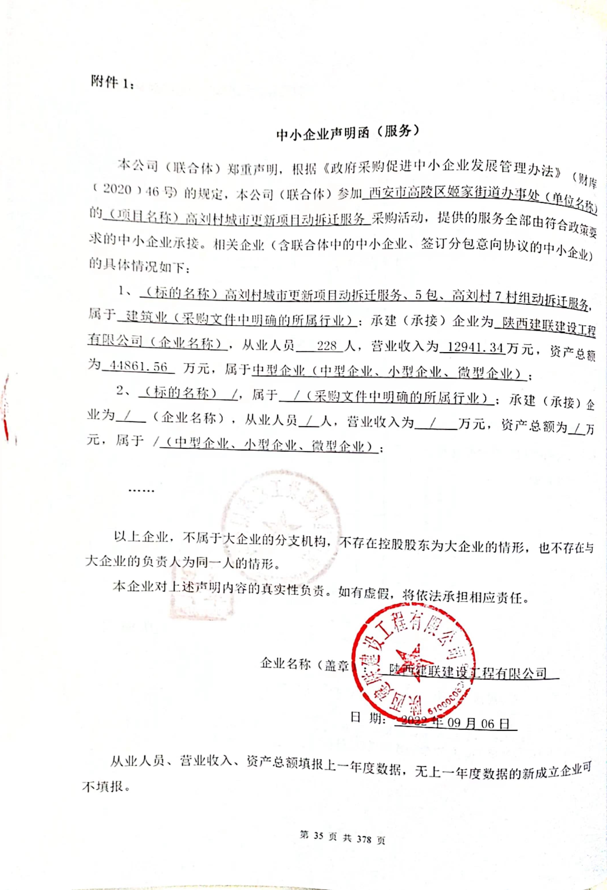 合同包5(高刘村7小组动拆迁服务): 工程类(陕西建联建设工程有限公司)