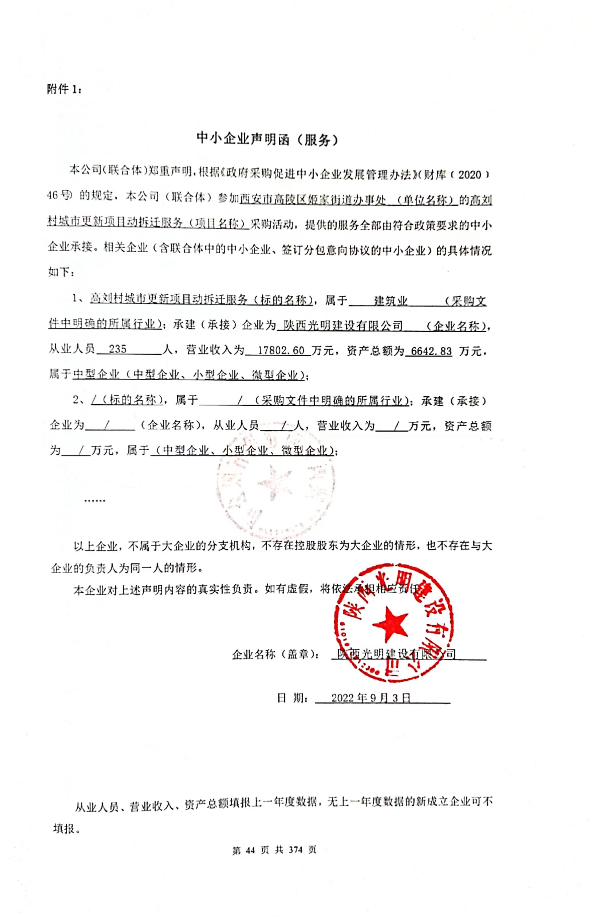 合同包1(高刘村1.2组动拆迁服务): 工程类(陕西光明建设有限公司)