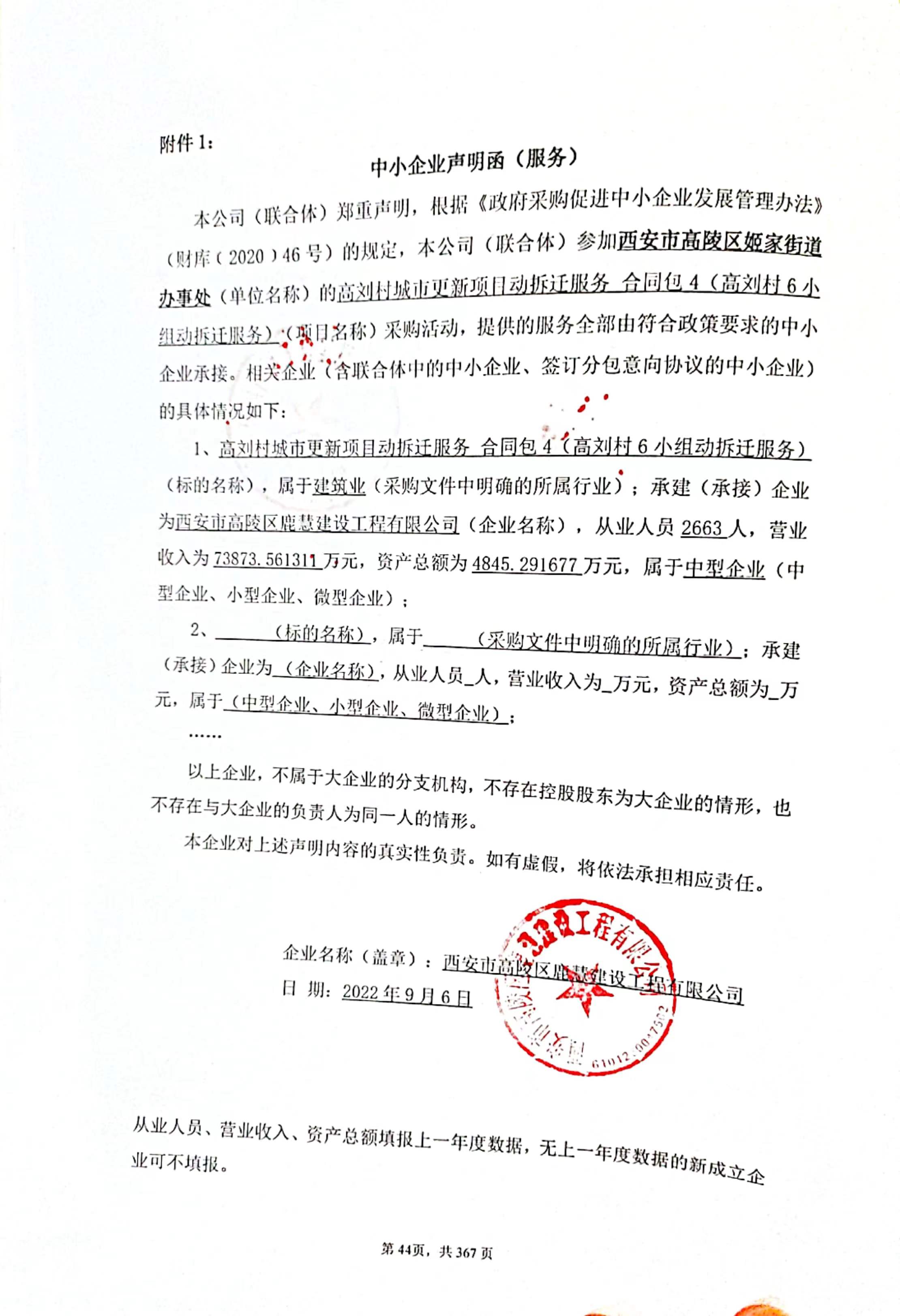 合同包4(高刘村6小组动拆迁服务): 工程类(西安市高陵区鹿慧建设工程有限公司)