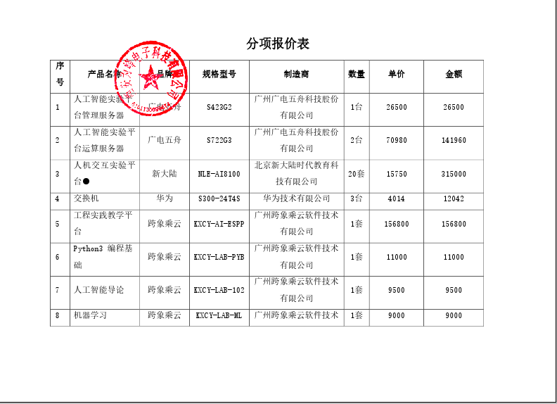 合同包1(咸阳师范学院人工智能教学综合实验平台建设项目): 货物类(西安为峰电子科技有限公司)
