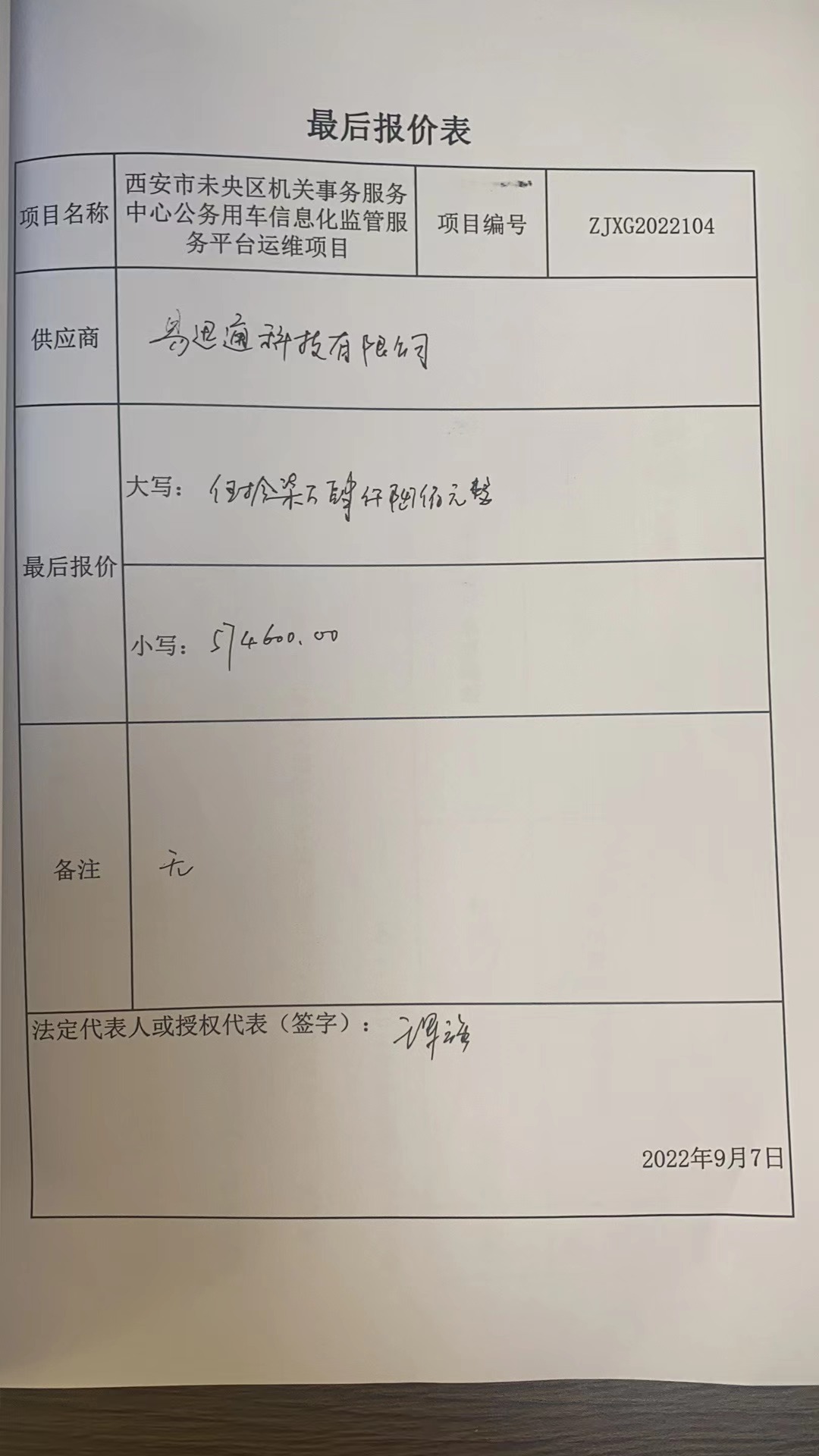 合同包1(西安市未央区机关事务服务中心公务用车信息化监管服务平台运维项目): 服务类(易迅通科技有限公司)