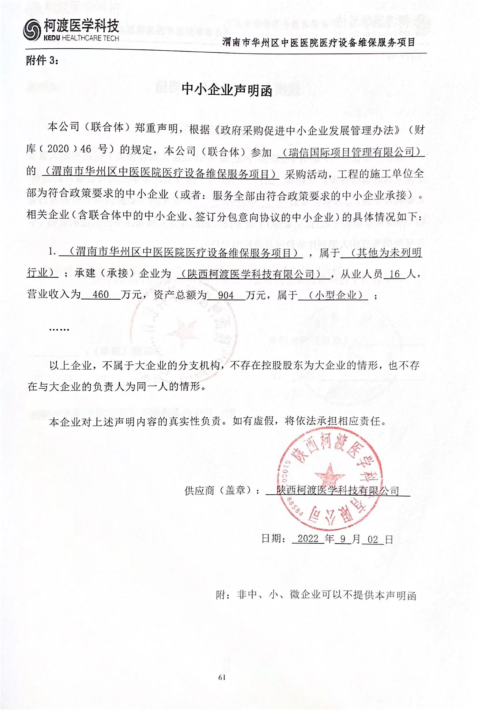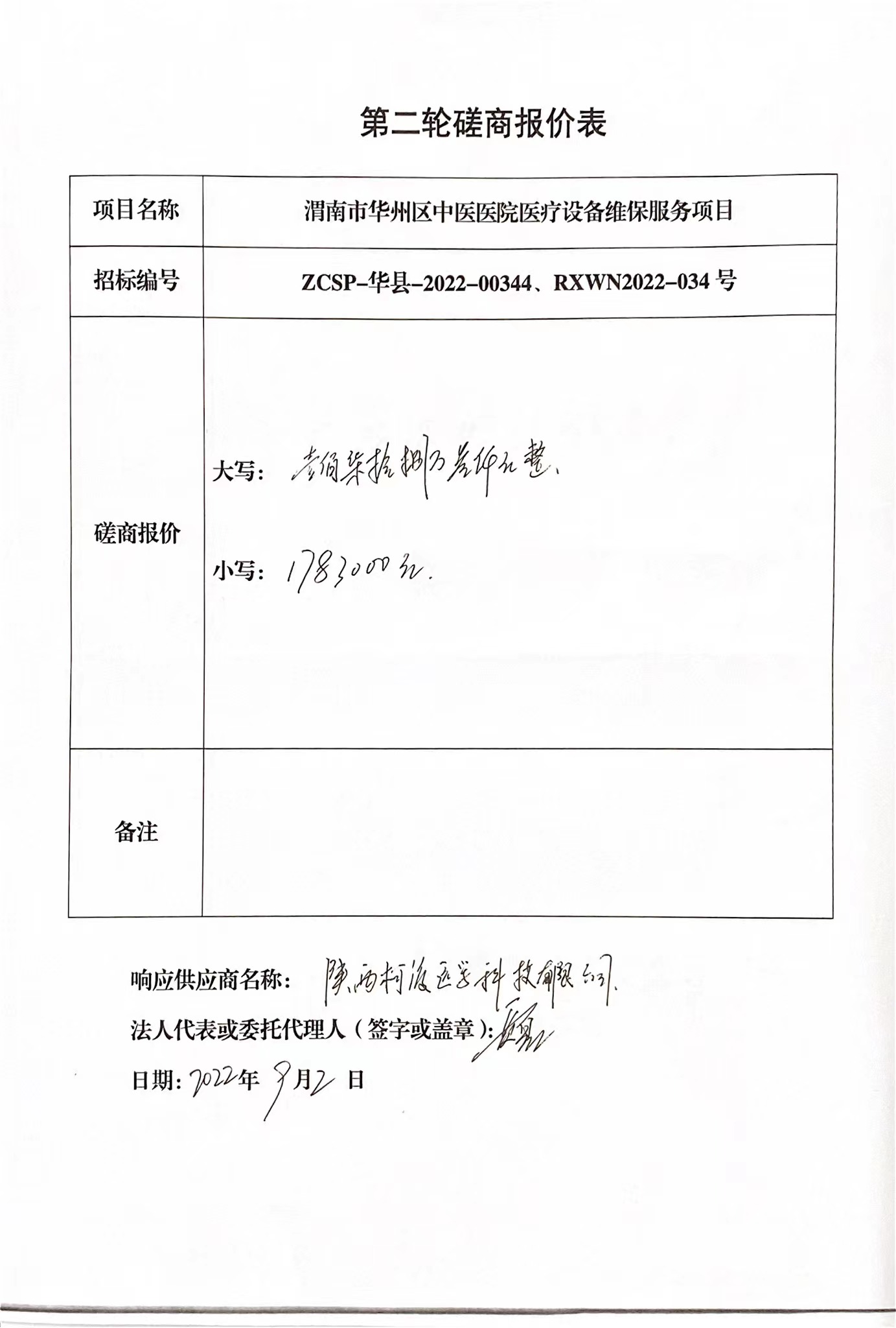 2022年9月8日渭南市华州区中医医院医疗设备维保服务项目成交结果公告 |