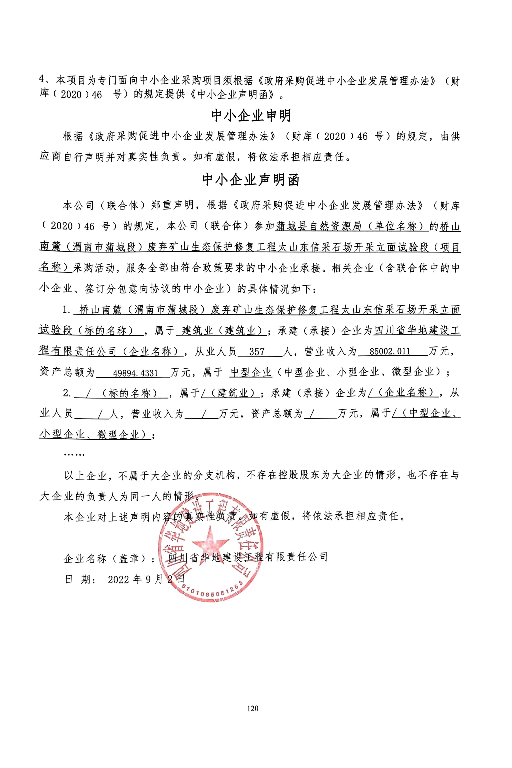 合同包1(桥山南麓(渭南市蒲城段)废弃矿山生态保护修复工程太山东信采石场开采立面试验段): 工程类(四川省华地建设工程有限责任公司)