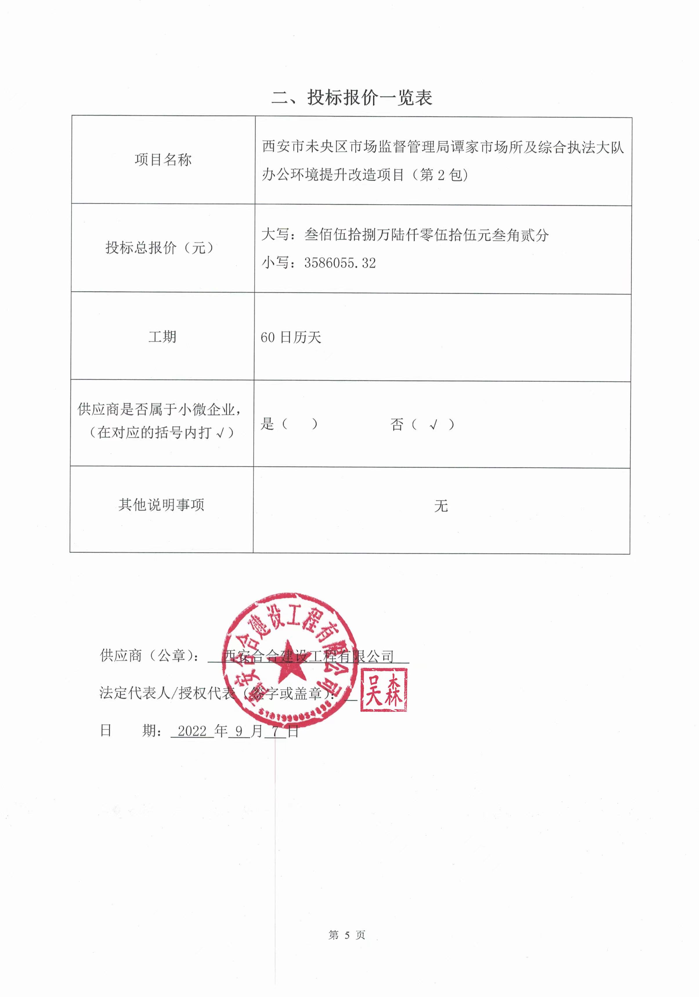 2022年9月8日西安市未央区市场监督管理局谭家市场所及综合执法大队办公环境提升改造项目中标(成交)结果公告 |