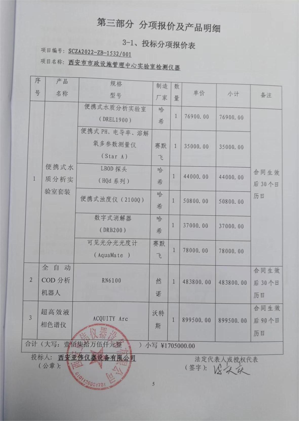 合同包1(西安市市政设施管理中心实验室检测仪器采购项目): 货物类(西安亚伟仪器设备有限公司)