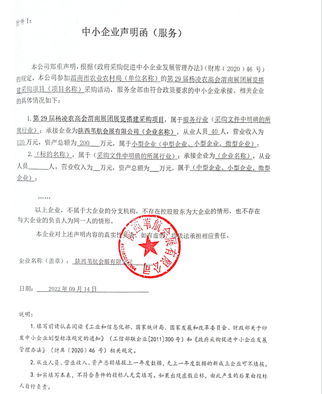 2022年9月14日渭南市农业农村局第29届杨凌农高会渭南展团展览搭建采购项目成交结果公告 |