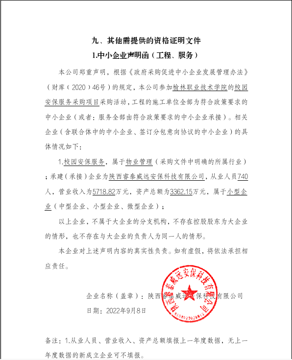 2022年9月15日榆林职业技术学院校园安保服务采购项目中标(成交)结果公告 |