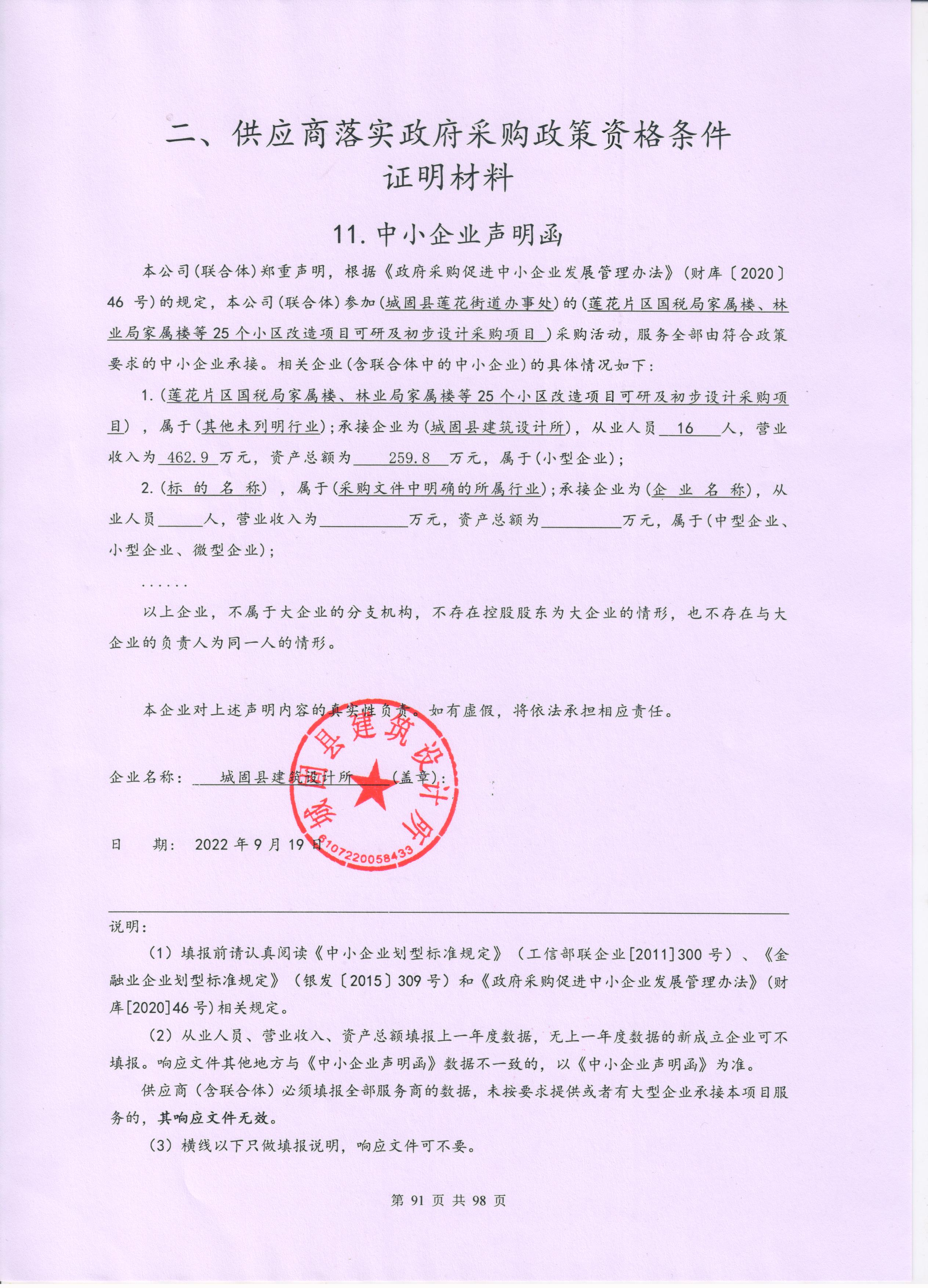 自本公告发布之日起1个工作日。 八、其他补充事宜无 九、凡对本次公告内容提出询问,请按以下方式联系。 1.采购人信息名称:城固县莲花街道办事处 地址:城固县莲花街道办事处太古石路中段 联系方式:15929429098 2.采购代理机构信息名称:华智建项目管理有限公司 地址:西安市莲湖区丰庆路48号1幢308室 联系方式:17391792078 3.项目联系方式项目联系人:邓工 电话:17391792078 华智建项目管理有限公司 2022年09月20日 相关附件: 城固县莲花街道办事处莲花片区国税局家属楼、林业局家属楼等25个小区改造项目可研及初步设计采购项目中标(成交)明细.pdf 中小企业申明函.jpg 莲花片区国税局家属楼、林业局家属楼等25个小区改造项目可研及初步设计采购项目竞争性磋商文件.pdf 十一、其他事项: ------------------------------------招标信息结束---------------------------- 标签: 莲花 采购 项目 中标 家属楼 城固县 林业局 上一篇: 2022年9月20日佛坪县电子政务外网升级改造项目中标(成交)结果公告 最新5000条招标信息列表: 滚动招标 |