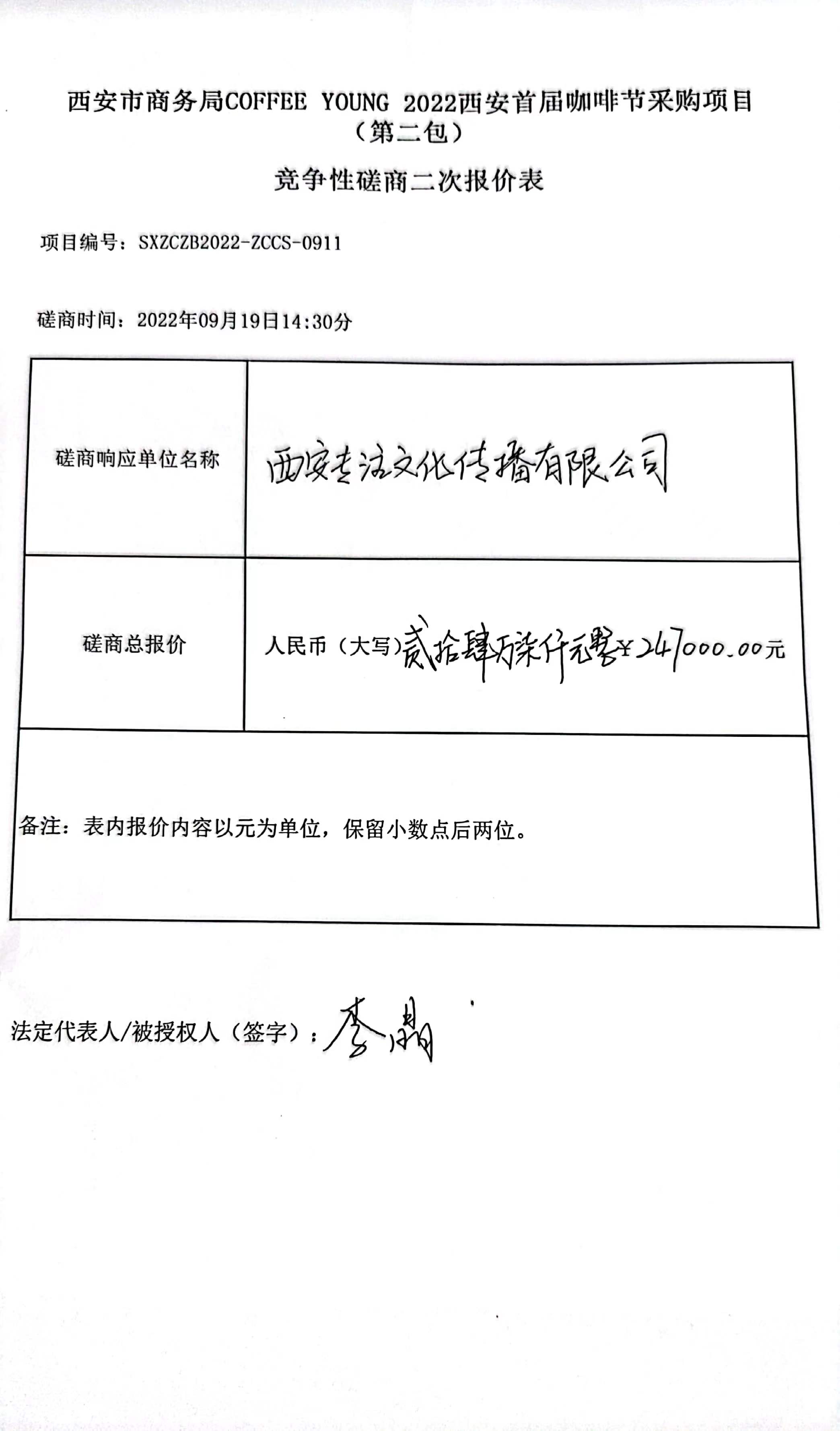----------------------------------招标机构发布信息原文:----------------------- <meta http-equiv="content-type" content="text/html;charset=utf-8"> 一、项目编号:SXZCZB2022-ZCCS-0911 二、项目名称:西安市商务局COFFEEYOUNG2022西安首届咖啡节采购项目 三、采购结果 合同包2(活动策划、组织,商户组织、管理):