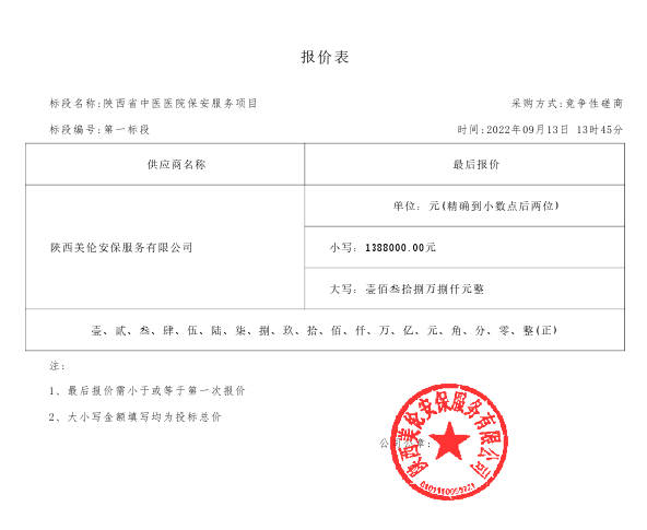 2022年9月21日陕西省中医医院保安服务项目中标(成交)结果公告 |