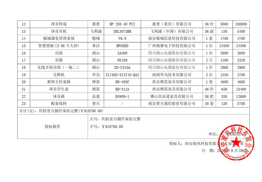 合同包1(咸阳师范学院翻译科研与教学实践中心建设项目): 货物类(西安凌风科技有限公司)