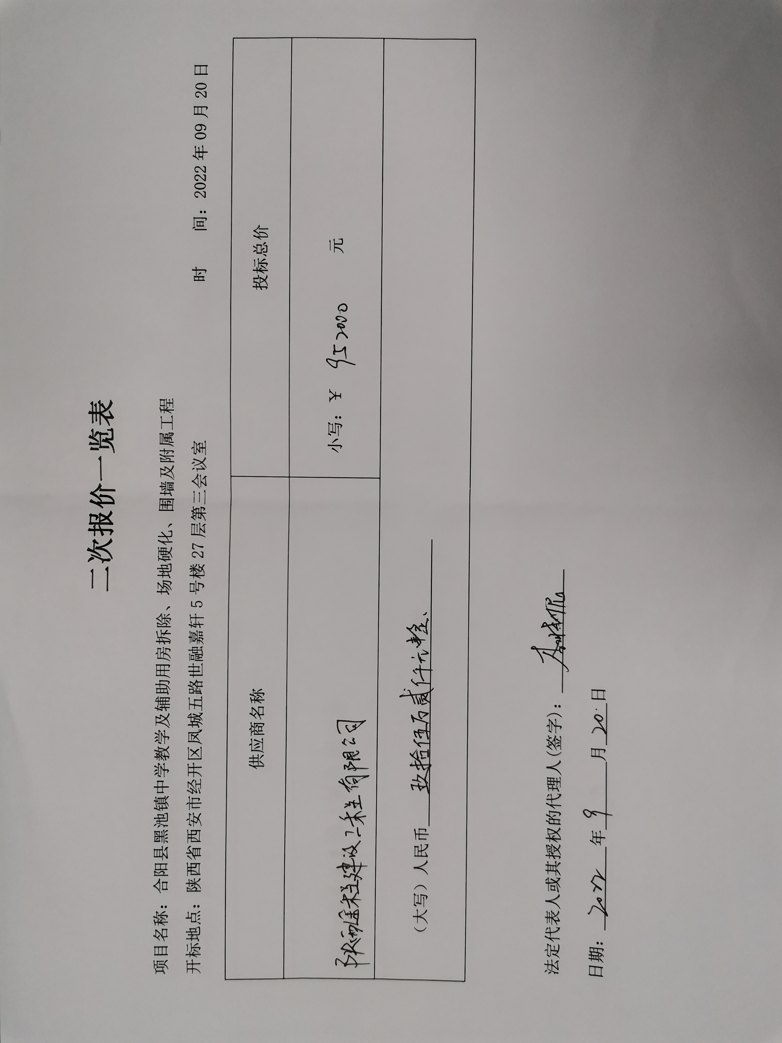 2022年9月22日合阳县教育局合阳县黑池镇中学教学及辅助用房拆除、场地硬化、围墙及附属工程中标(成交)结果公告 |