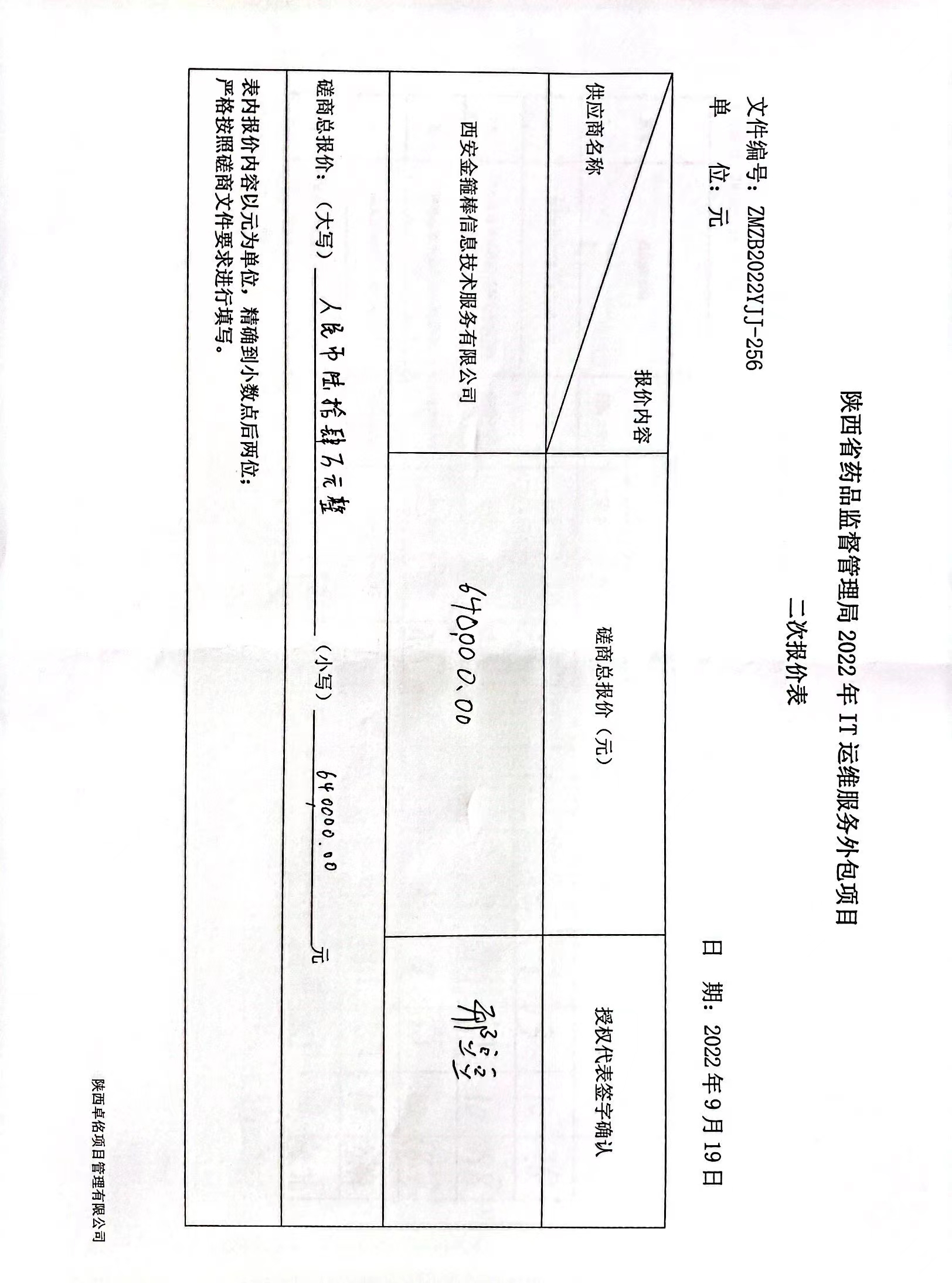 2022年9月22日陕西省药品监督管理局2022年IT运维服务外包项目成交结果公告 |