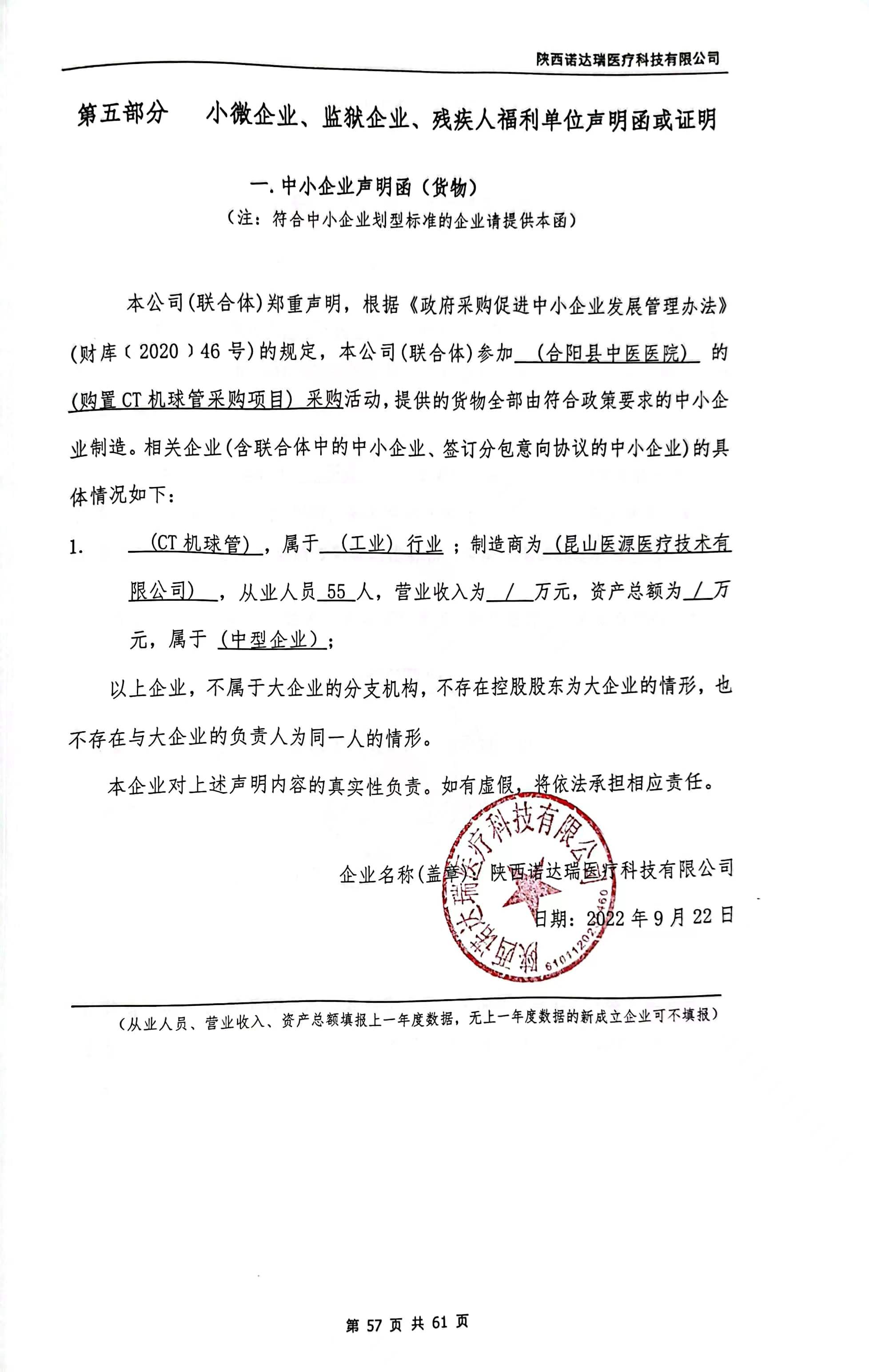 自本公告发布之日起1个工作日。 八、其他补充事宜/ 九、凡对本次公告内容提出询问,请按以下方式联系。 1.采购人信息名称:合阳县中医医院 地址:合阳县东新街69号 联系方式:0913-5522627 2.采购代理机构信息名称:陕西省采购招标有限责任公司 地址:西安市高新二路2号山西证券大厦8层 联系方式:029-88490543 3.项目联系方式项目联系人:张怡、马超 电话:029-88490543 陕西省采购招标有限责任公司 2022年09月23日 相关附件: 中小企业声明函.jpg 合阳县中医医院购置CT机球管采购项目中标(成交)明细.pdf 最后分项报价表 (1).jpg 最后分项报价表 (2).jpg 最后分项报价表 (3).jpg 购置CT机球管采购项目谈判文件.docx 十一、其他事项: ------------------------------------招标信息结束---------------------------- 标签: 采购 中标 项目 合阳县 中医医院 公告 机球管 上一篇: 2022年9月23日合阳县中医医院手术室防护改造项目中标(成交)结果公告 最新5000条招标信息列表: 滚动招标 |
