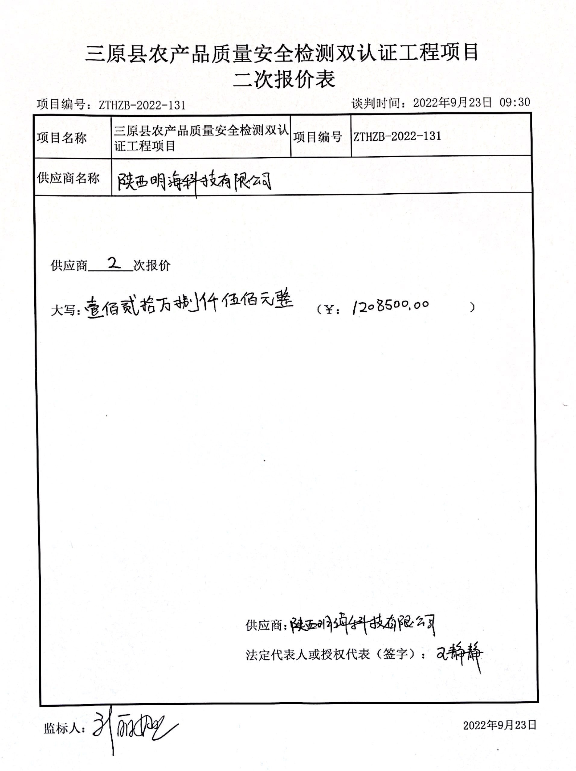 2022年9月26日三原县农产品质量安全检测双认证工程项目中标(成交)结果公告 |