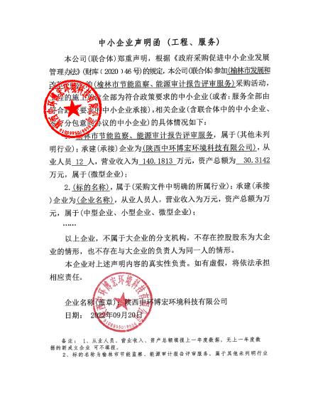 合同包1(榆林市节能监察、能源审计报告评审服务采购项目): 服务类(陕西中环博宏环境科技有限公司)