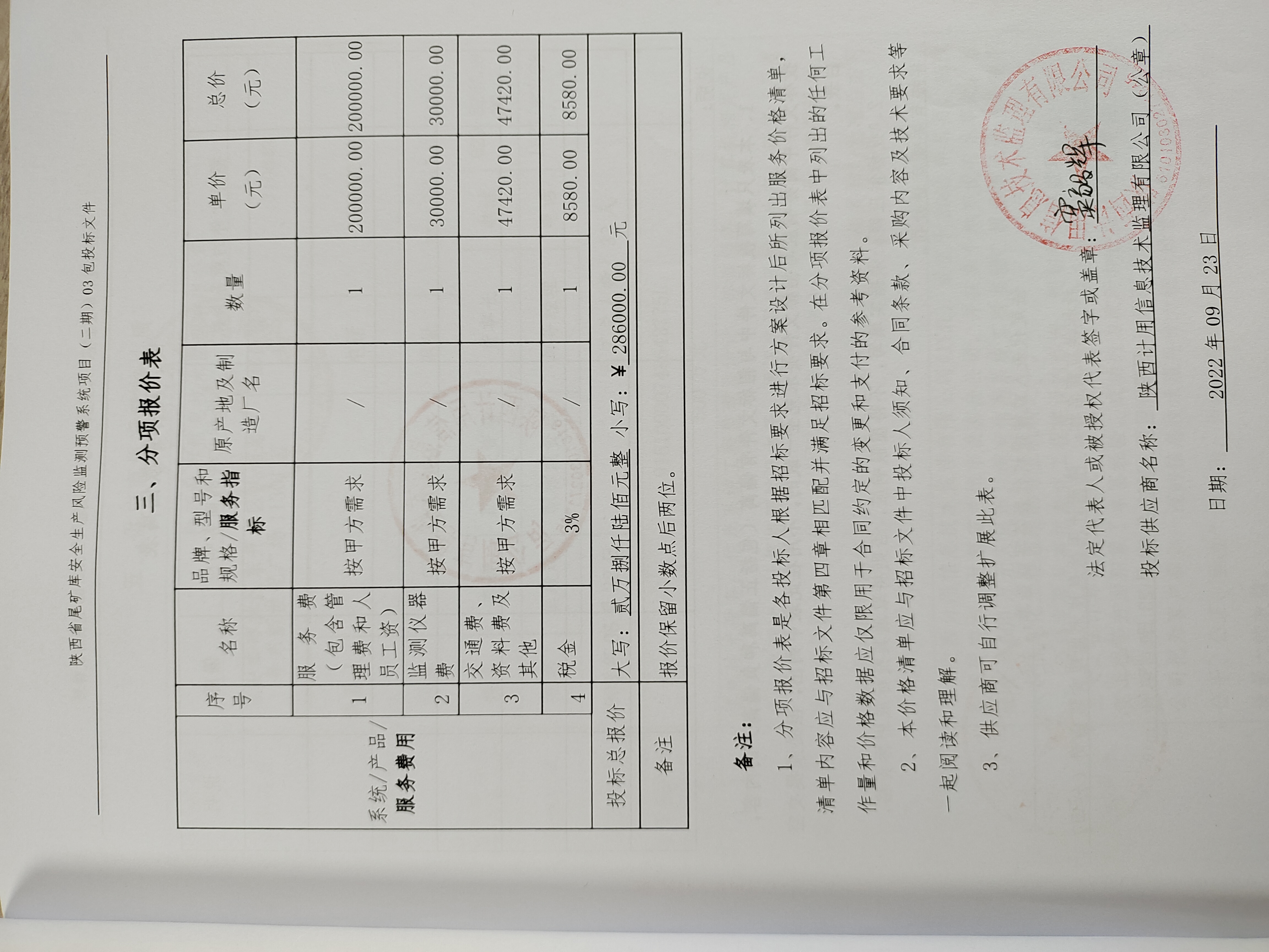 合同包3(陕西省尾矿库安全生产风险监测预警系统项目(二期)和非煤矿山安全生产风险监测预警系统项目(一期)监理): 服务类(陕西计用信息技术监理有限公司)