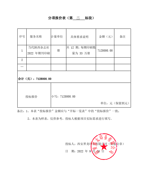 2022年9月27日当代陕西杂志社2022年期刊印刷项目中标(成交)结果公告 |