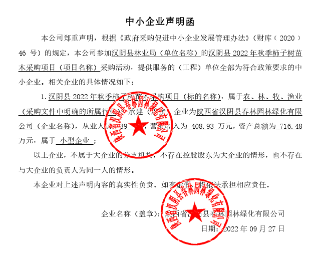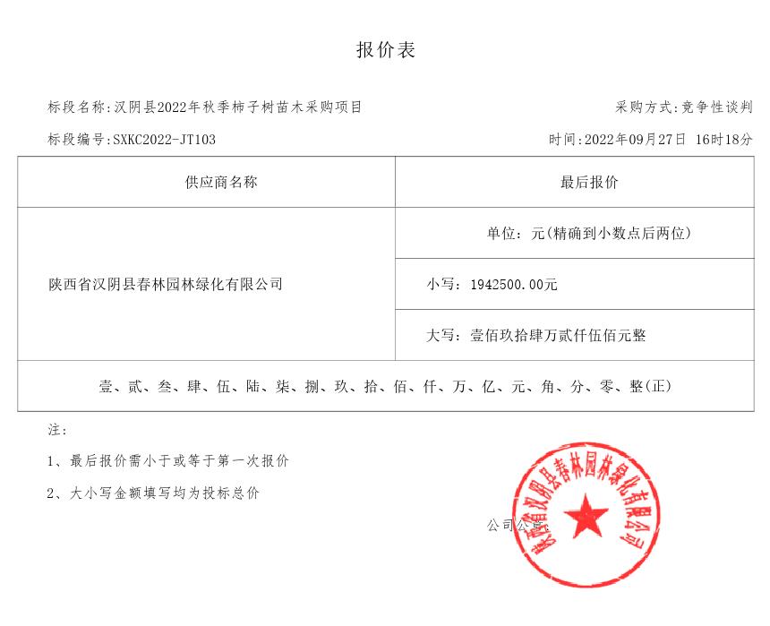 2022年9月29日汉阴县林业局汉阴县2022年秋季柿子树苗木采购项目中标(成交)结果公告 |