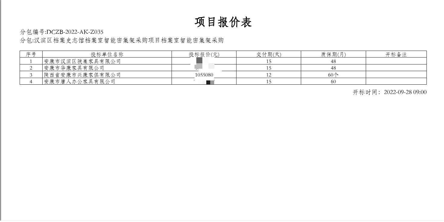 2022年9月29日汉滨区档案史志馆档案室智能密集架采购项目中标(成交)结果公告 |