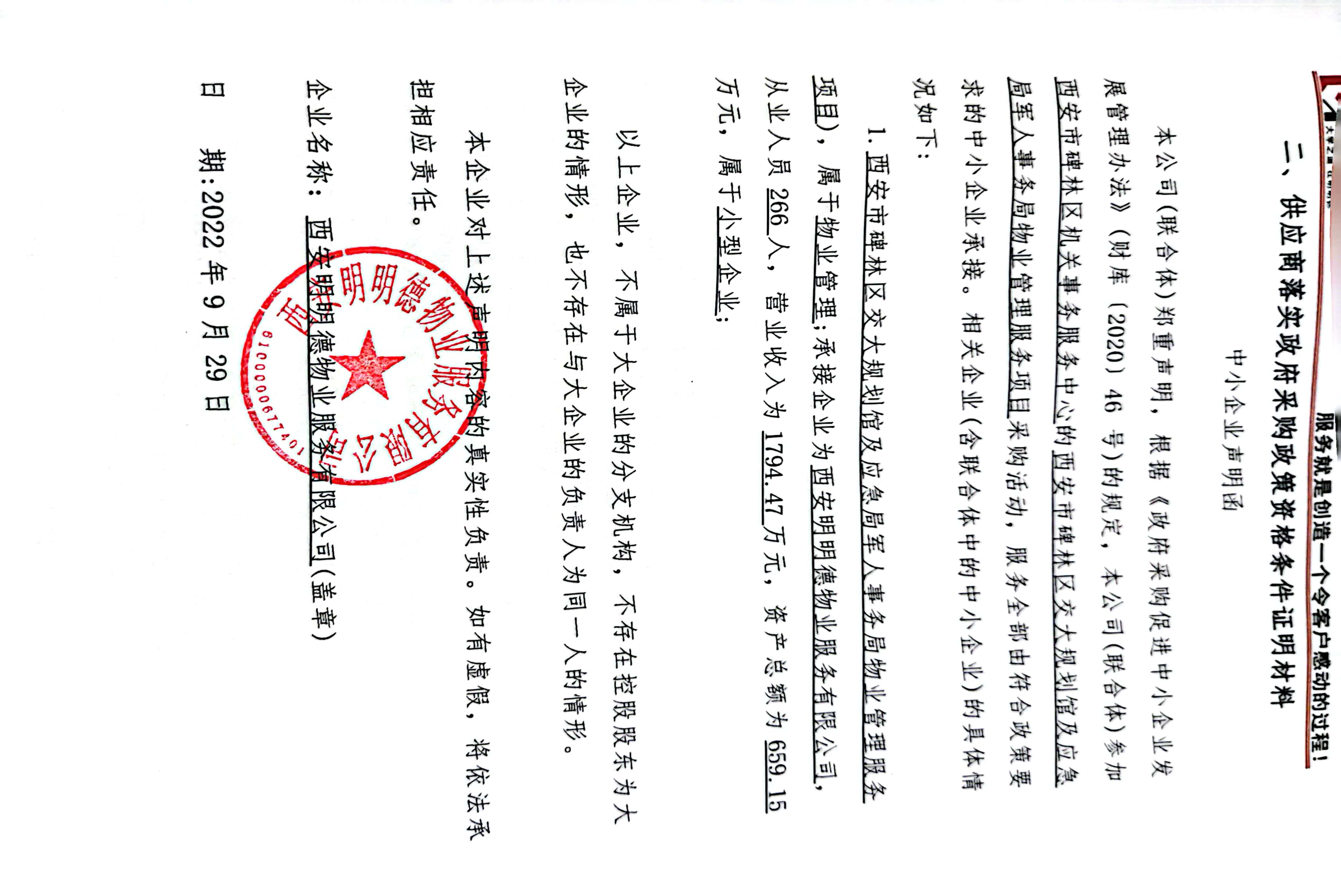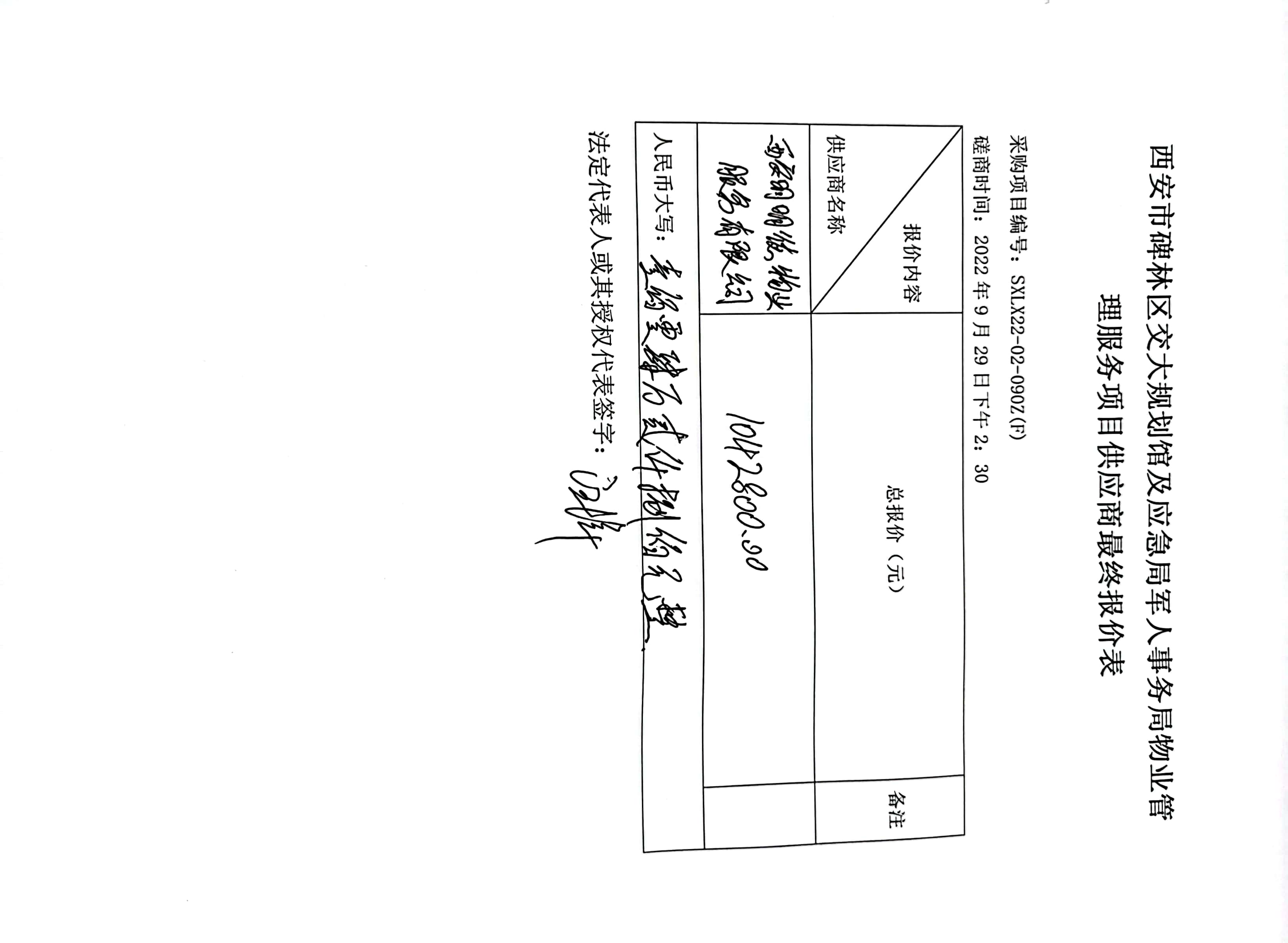 2022年9月30日西安市碑林区交大规划馆及应急局军人事务局物业管理服务项目中标(成交)结果公告 |