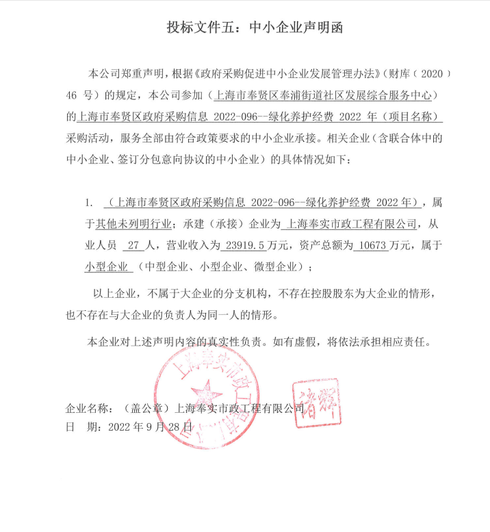 2022年10月9日上海市奉贤区政府采购信息2022-096--绿化养护经费2022年的中标(成交)结果公告 |