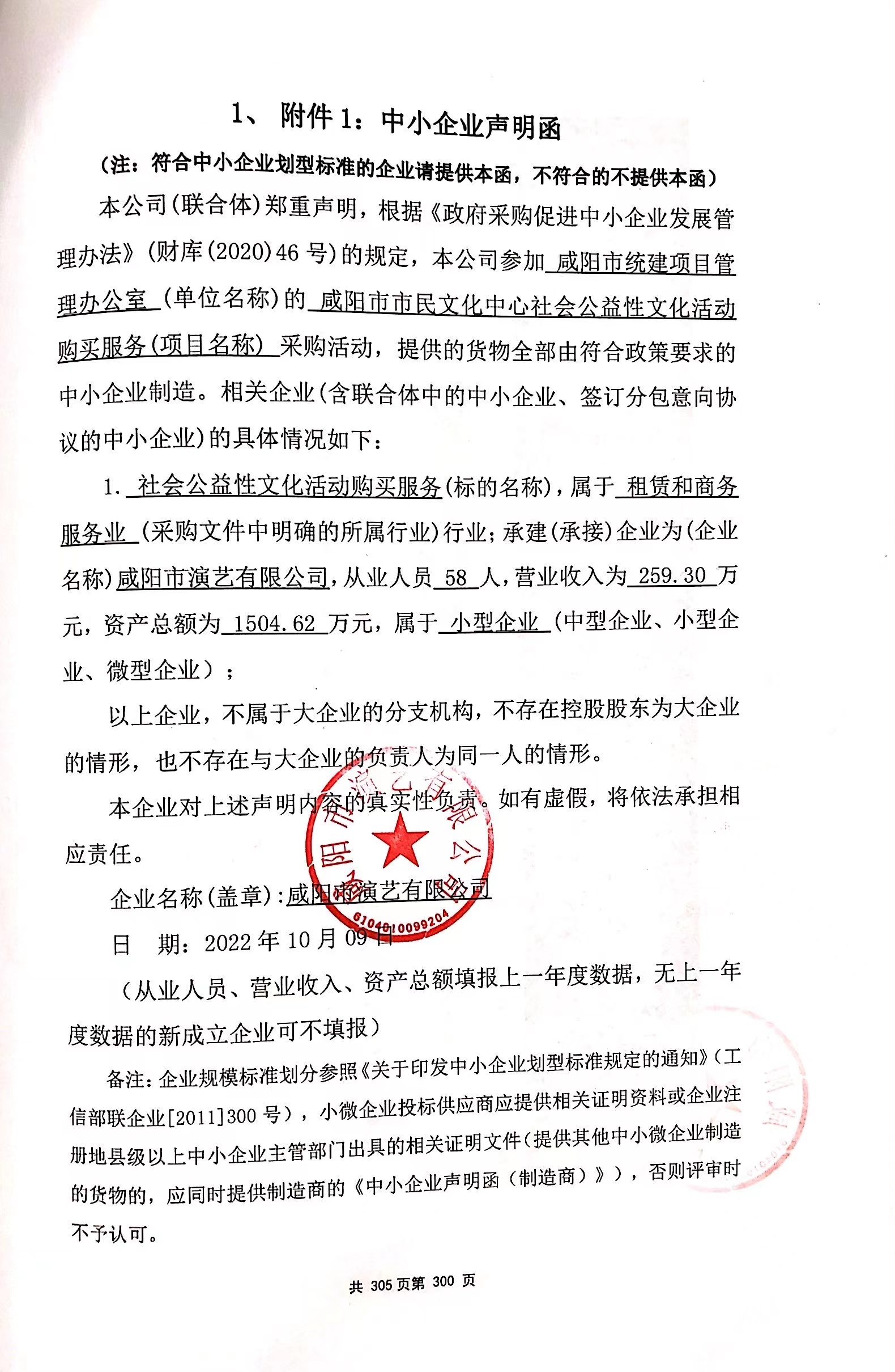 合同包1(咸阳市市民文化中心社会公益性文化活动购买服务): 服务类(咸阳市演艺有限公司)