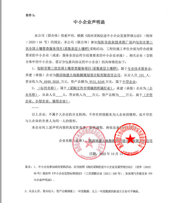 合同包1(旬阳市第三次全国土壤普查服务项目(采集表层土壤样)): 服务类(陕西地建土地勘测规划设计院有限责任公司)