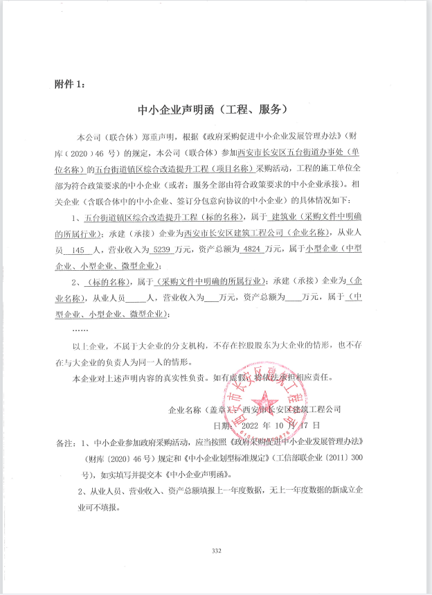 自本公告发布之日起1个工作日。 八、其他补充事宜无 九、凡对本次公告内容提出询问,请按以下方式联系。 1.采购人信息名称:西安市长安区五台街道办事处 地址:陕西省西安市长安区五台街道留村 联系方式:029-85945203 2.采购代理机构信息名称:华夏国际项目管理有限公司 地址:西安市高新区科技五路8号数字大厦11楼 联系方式:029-88899970/72/73/75-816 3.项目联系方式项目联系人:李莹、张艳萍、刘锦江 电话:029-88899970/72/73/75-816 华夏国际项目管理有限公司 2022年10月18日 相关附件: 中小企业声明函.png 西安市长安区五台街道办事处五台街道镇区综合改造提升工程中标(成交)明细.pdf 开标一览表.pdf (定稿)招标文件.pdf 十一、其他事项: ------------------------------------招标信息结束---------------------------- 标签: 五台 长安 工程 中标 西安市 街道办事处 镇区 上一篇: 2022年10月18日成都市双流区东升社区卫生服务中心2022年幼儿园、重点人群、中小学体检服务外包采购项目中标(成交)结果公告 最新5000条招标信息列表: 滚动招标 |