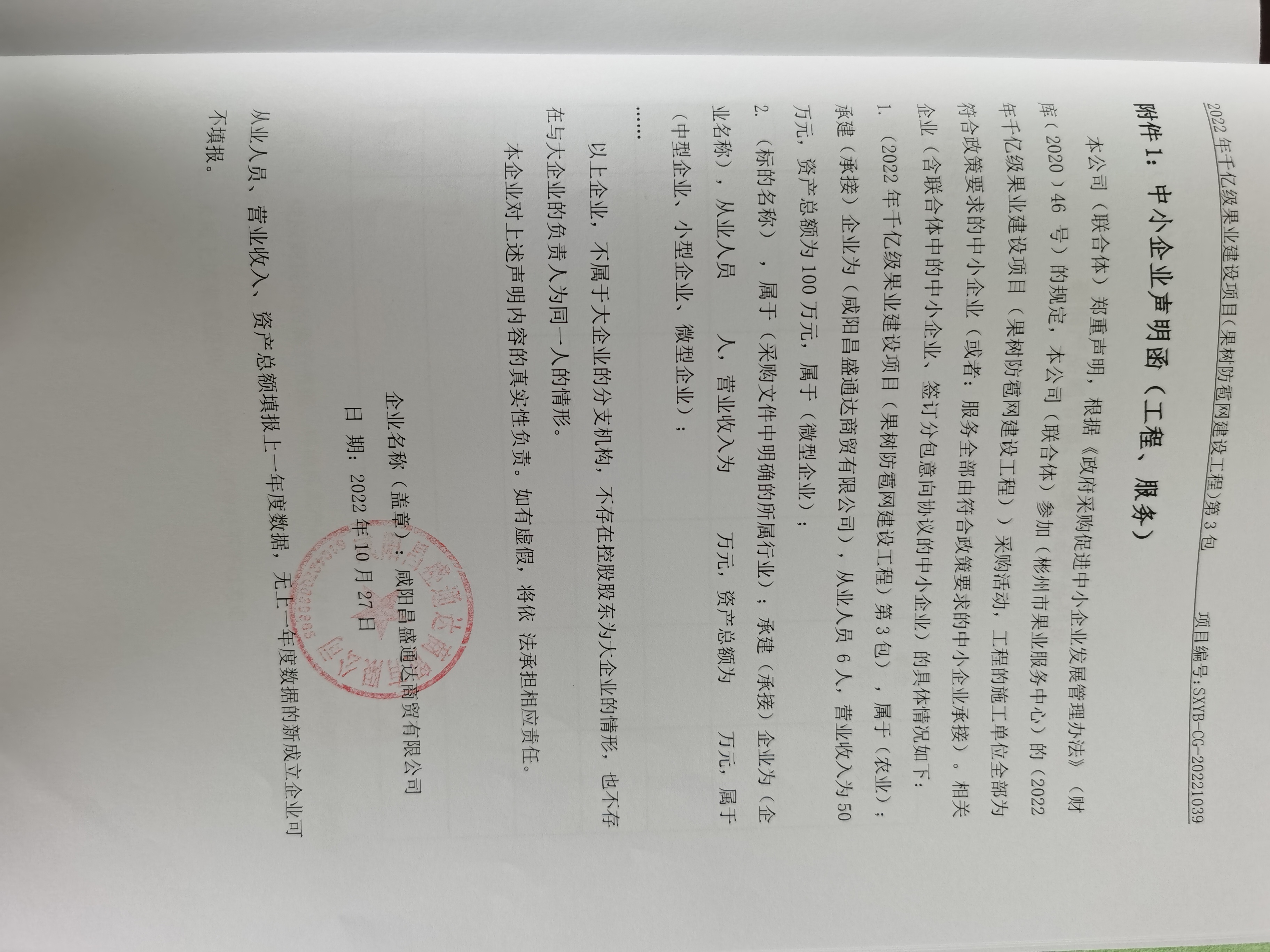 合同包3(2022年千亿级果业建设项目(果树防雹网建设工程)第3包): 工程类(咸阳昌盛通达商贸有限公司)