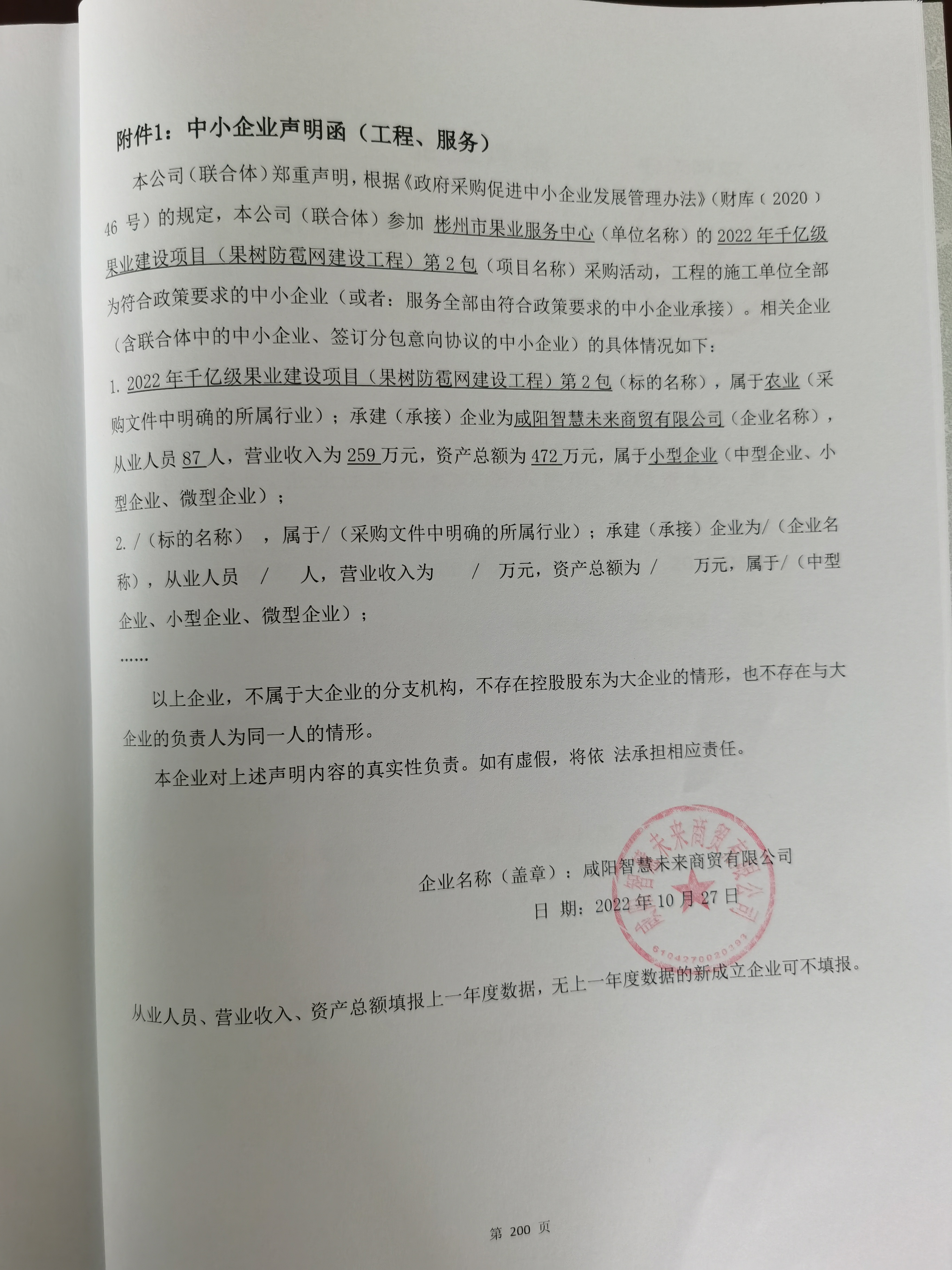 合同包2(2022年千亿级果业建设项目(果树防雹网建设工程)第2包): 工程类(咸阳智慧未来商贸有限公司)