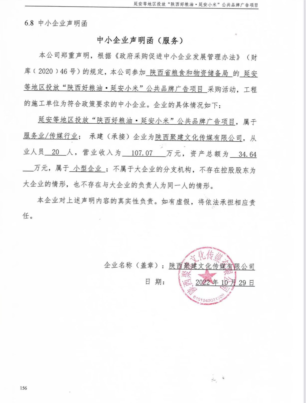 合同包1(延安等地区投放“陕西好粮油·延安小米”公共品牌广告): 服务类(陕西聚建文化传媒有限公司)
