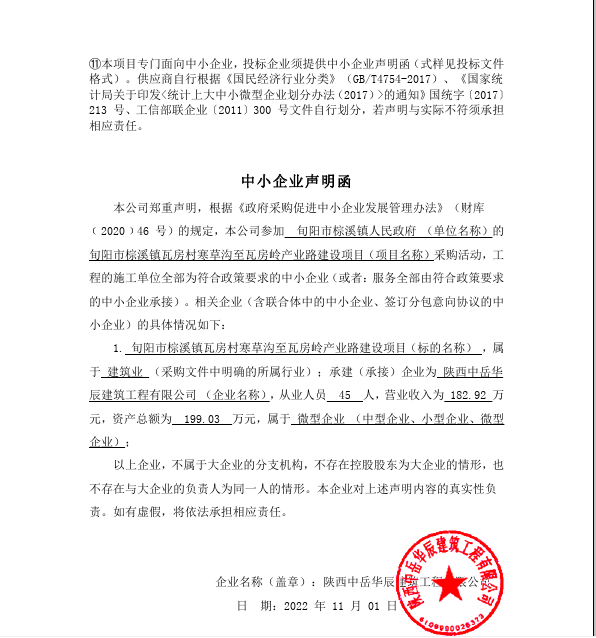 合同包1(旬阳市棕溪镇瓦房村寒草沟至瓦房岭产业路建设项目): 工程类(陕西中岳华辰建筑工程有限公司)