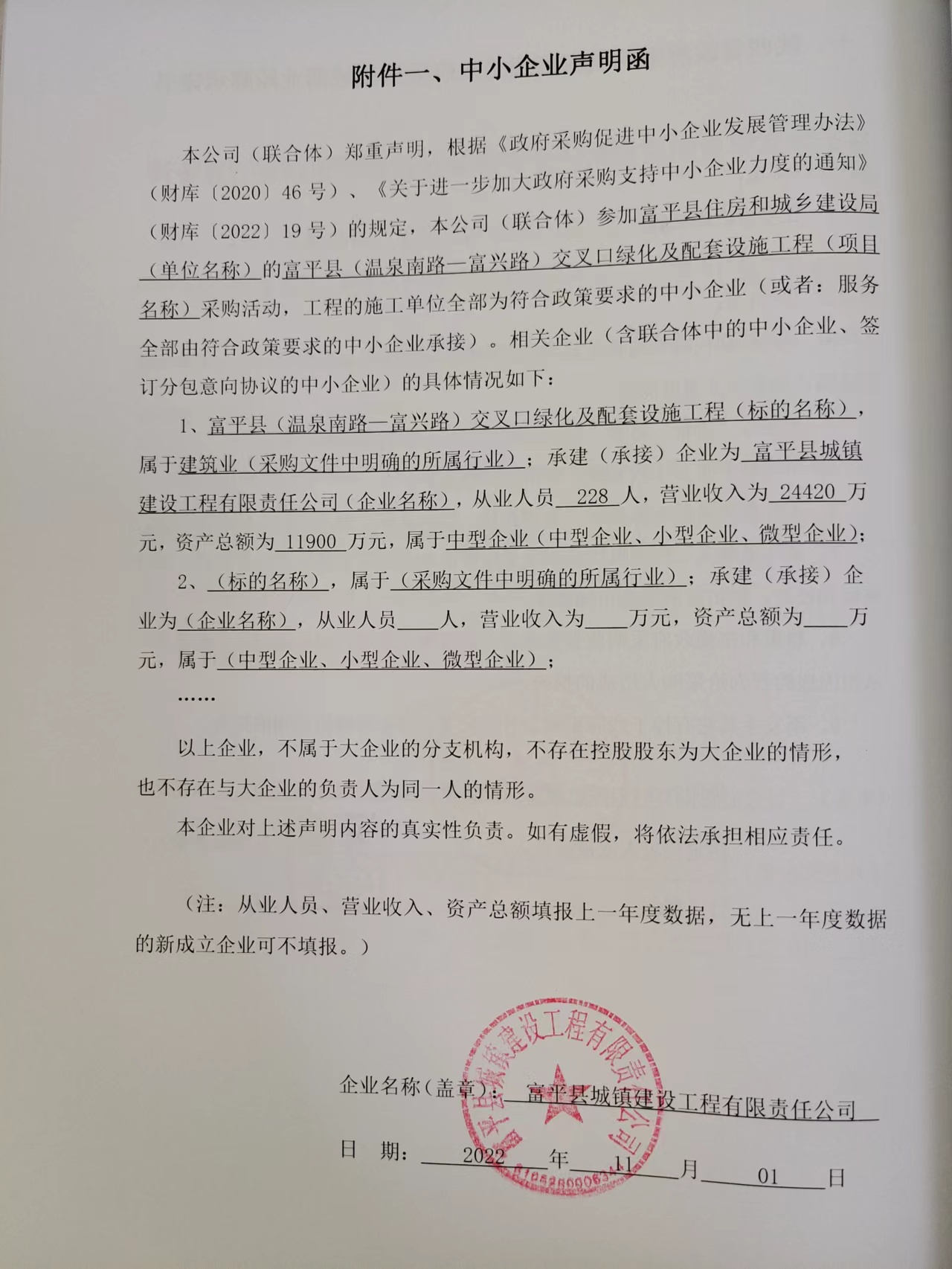 自本公告发布之日起1个工作日。 八、其他补充事宜开户名称:陕西厷森项目管理有限公司 开户银行:富平县农村信用合作联社 账 号:2705020101201000091712 九、凡对本次公告内容提出询问,请按以下方式联系。 1.采购人信息名称:富平县住房和城乡建设局(本级) 地址:富平县车站大街143号 联系方式:0913-8221295 2.采购代理机构信息名称:陕西厷森项目管理有限公司 地址:陕西省渭南市富平县城关街道办事处书店社区富兴路中段西侧商务楼 联系方式:0913-8921111 3.项目联系方式项目联系人:刘工 电话:0913-8921111 陕西厷森项目管理有限公司 2022年11月02日 相关附件: 中小企业声明函.jpg 富平县(温泉南路—富兴路)交叉口绿化及配套设施工程磋商文件(2022101203).pdf 富平县住房和城乡建设局(本级)富平县(温泉南路—富兴路)交叉口绿化及配套设施工程中标(成交)明细.pdf 十一、其他事项: ------------------------------------招标信息结束---------------------------- 标签: 工程 中标 温泉 富平县 建设局 交叉口 南路 上一篇: 2022年11月2日科尔沁右翼中旗中等职业学校2022年中等职业学校附属工程及零星工程项目结果公告 最新5000条招标信息列表: 滚动招标 |