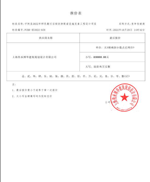 合同包1(宁陕县2022年移民搬迁后续扶持配套设施完善工程设计项目): 服务类(上海传承博华建筑规划设计有限公司)